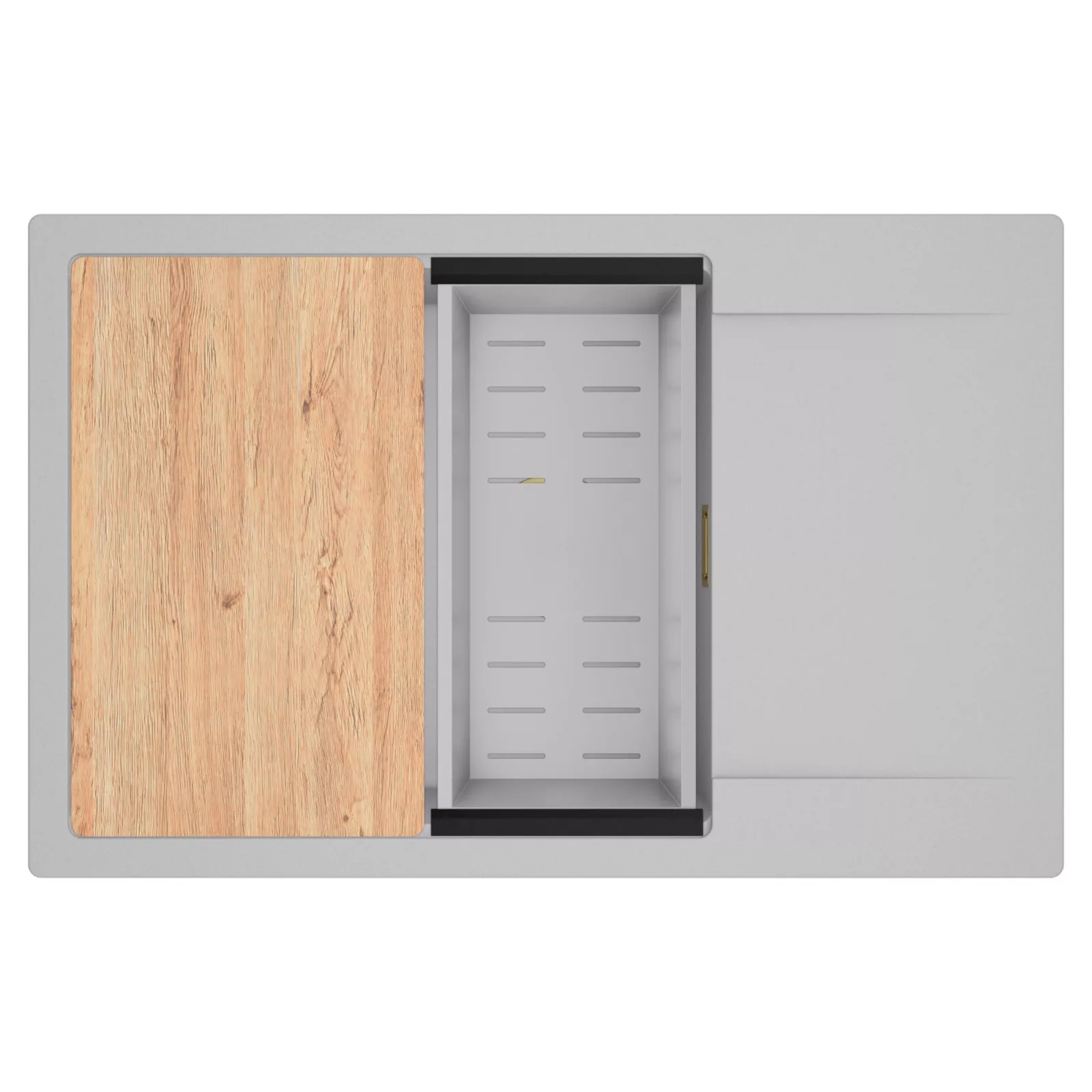 A HomeDepo SmartEdge Többfunkciós Peremrendszer egy intelligensen kialakított peremmegoldás, amely a mosogatót kompakt, mégis teljes értékű konyhai térré alakítja a mindennapok során. A speciális peremkialakítás lehetővé teszi a vágódeszka, a feltekerhető csepegtető rács, a gyümölcsmosó és a csepegtető kosár stabil, biztonságos és kényelmes elhelyezését közvetlenül a mosogató speciális belső peremén. A kiegészítők síkban csúsztathatók és szabadon kombinálhatók, így extra munkafelületet nyersz anélkül, hogy helyet foglalnál a konyhapulton – a mosogató valódi többfunkciós központtá válik.