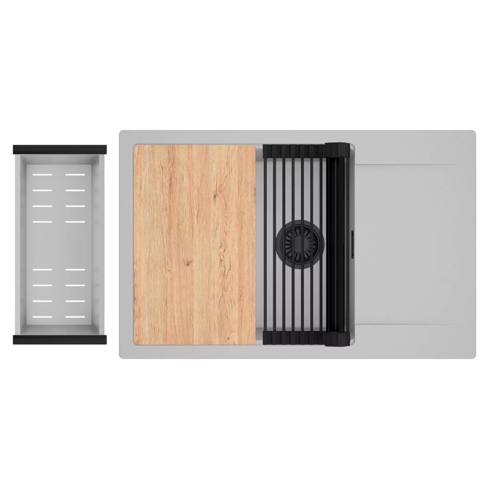 A HomeDepo SmartEdge Többfunkciós Peremrendszer egy intelligensen kialakított peremmegoldás, amely a mosogatót kompakt, mégis teljes értékű konyhai térré alakítja a mindennapok során. A speciális peremkialakítás lehetővé teszi a vágódeszka, a feltekerhető csepegtető rács, a gyümölcsmosó és a csepegtető kosár stabil, biztonságos és kényelmes elhelyezését közvetlenül a mosogató speciális belső peremén. A kiegészítők síkban csúsztathatók és szabadon kombinálhatók, így extra munkafelületet nyersz anélkül, hogy helyet foglalnál a konyhapulton – a mosogató valódi többfunkciós központtá válik.