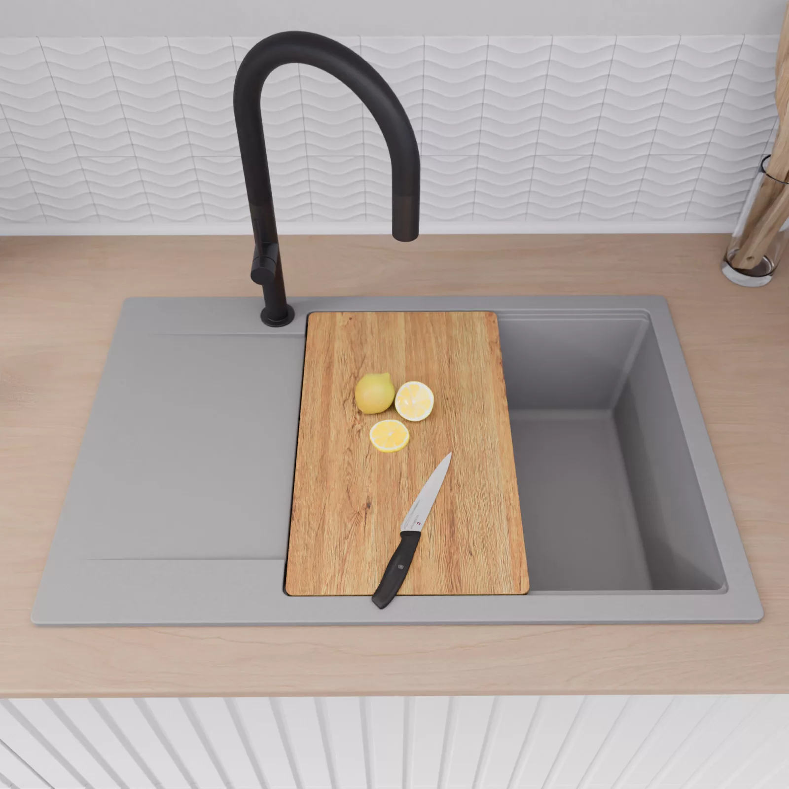 A mosogató prémium minőségű gránit kompozitból készült. Letisztult megjelenése mellett rendkívül praktikus, így bármilyen stílusú konyhába harmonikusan illeszkedik. A strapabíró gránit anyag hosszú távon is megbízható használatot garantál.