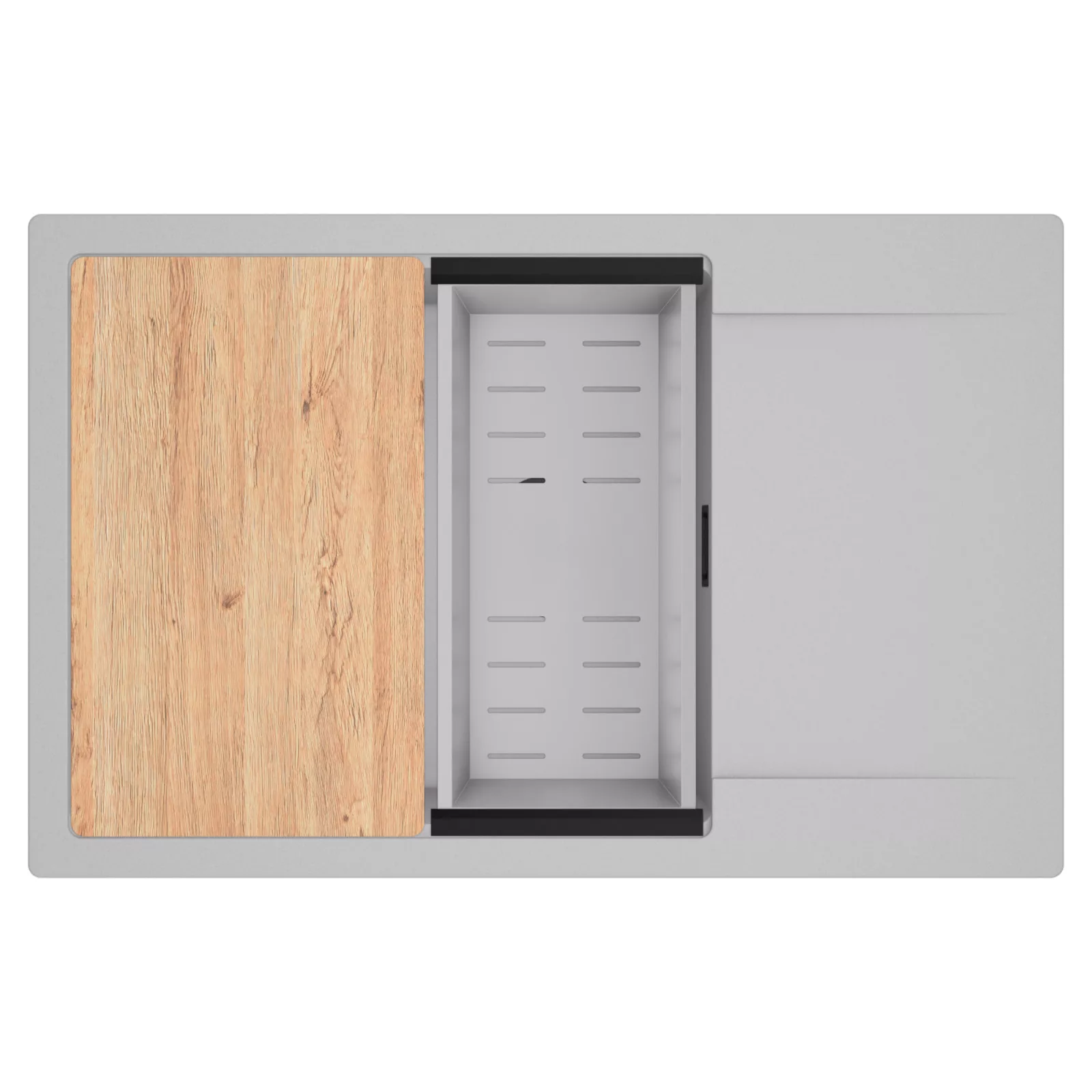 A HomeDepo SmartEdge Többfunkciós Peremrendszer egy intelligensen kialakított peremmegoldás, amely a mosogatót kompakt, mégis teljes értékű konyhai térré alakítja a mindennapok során. A speciális peremkialakítás lehetővé teszi a vágódeszka, a feltekerhető csepegtető rács, a gyümölcsmosó és a csepegtető kosár stabil, biztonságos és kényelmes elhelyezését közvetlenül a mosogató speciális belső peremén. A kiegészítők síkban csúsztathatók és szabadon kombinálhatók, így extra munkafelületet nyersz anélkül, hogy helyet foglalnál a konyhapulton – a mosogató valódi többfunkciós központtá válik.