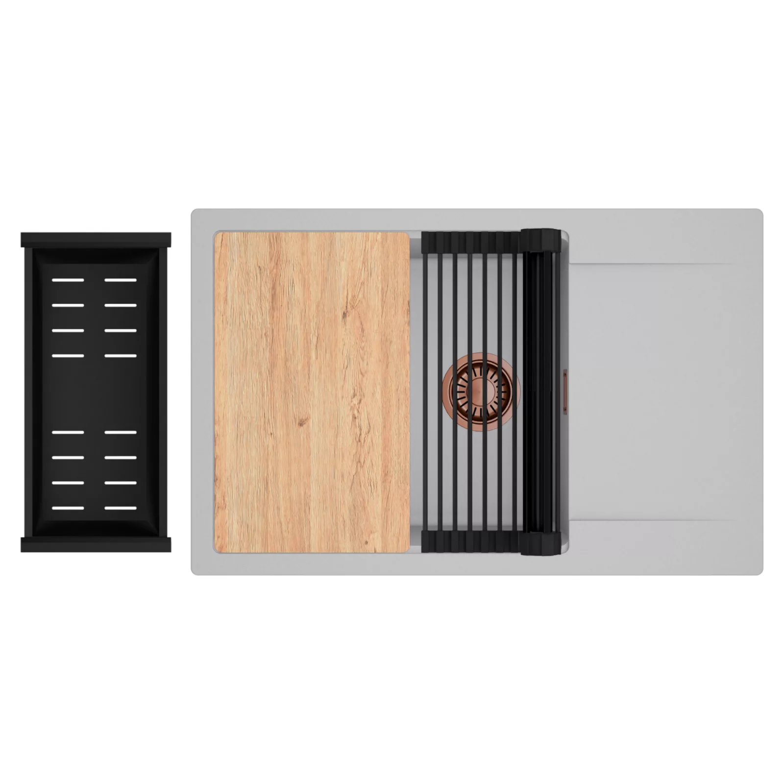 A HomeDepo SmartEdge Többfunkciós Peremrendszer egy intelligensen kialakított peremmegoldás, amely a mosogatót kompakt, mégis teljes értékű konyhai térré alakítja a mindennapok során. A speciális peremkialakítás lehetővé teszi a vágódeszka, a feltekerhető csepegtető rács, a gyümölcsmosó és a csepegtető kosár stabil, biztonságos és kényelmes elhelyezését közvetlenül a mosogató speciális belső peremén. A kiegészítők síkban csúsztathatók és szabadon kombinálhatók, így extra munkafelületet nyersz anélkül, hogy helyet foglalnál a konyhapulton – a mosogató valódi többfunkciós központtá válik.