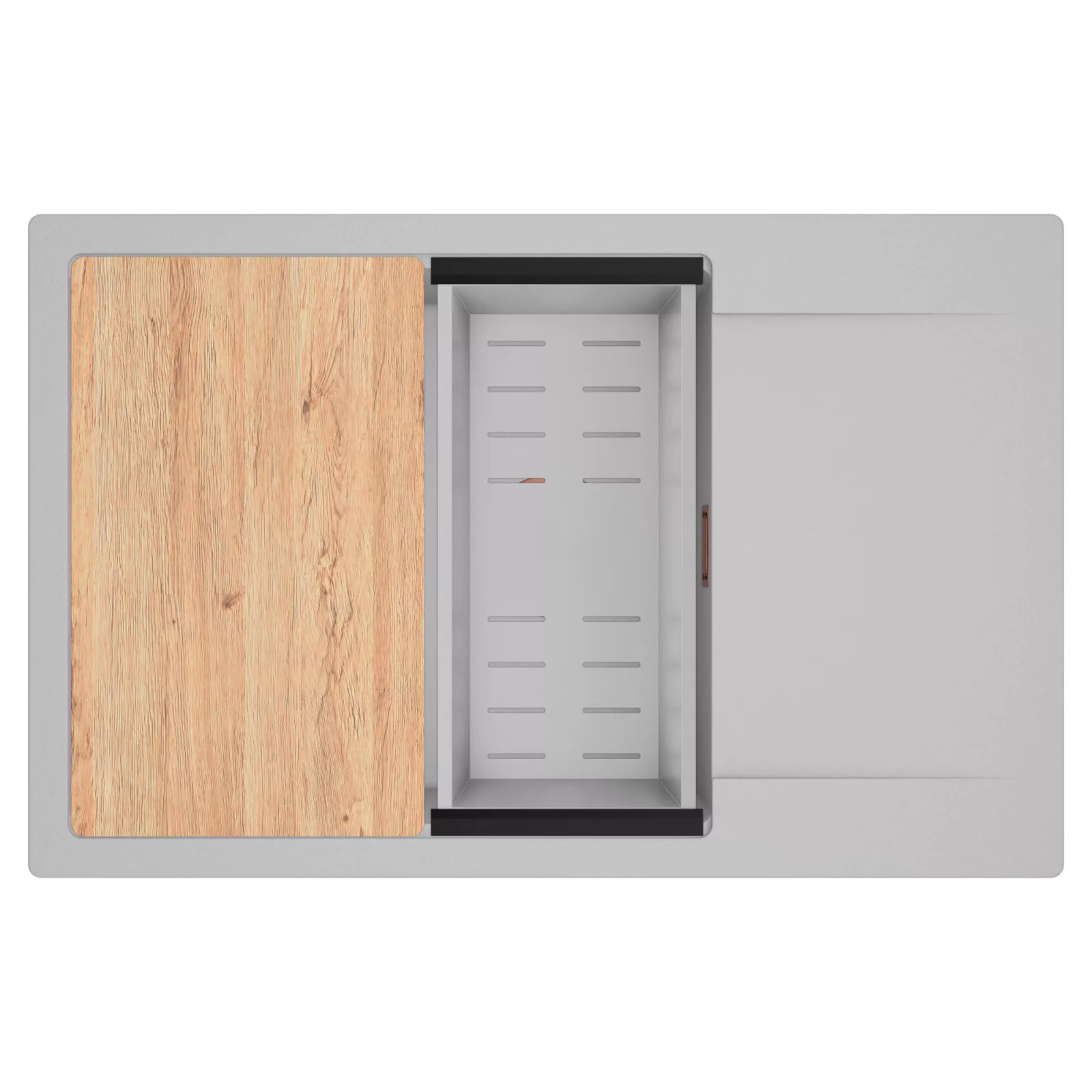 HD Onyx Grey 78-XL egymedencés mosogatótálca szett, vágódeszkával és csepegtetőkosárral, alpesi szürke