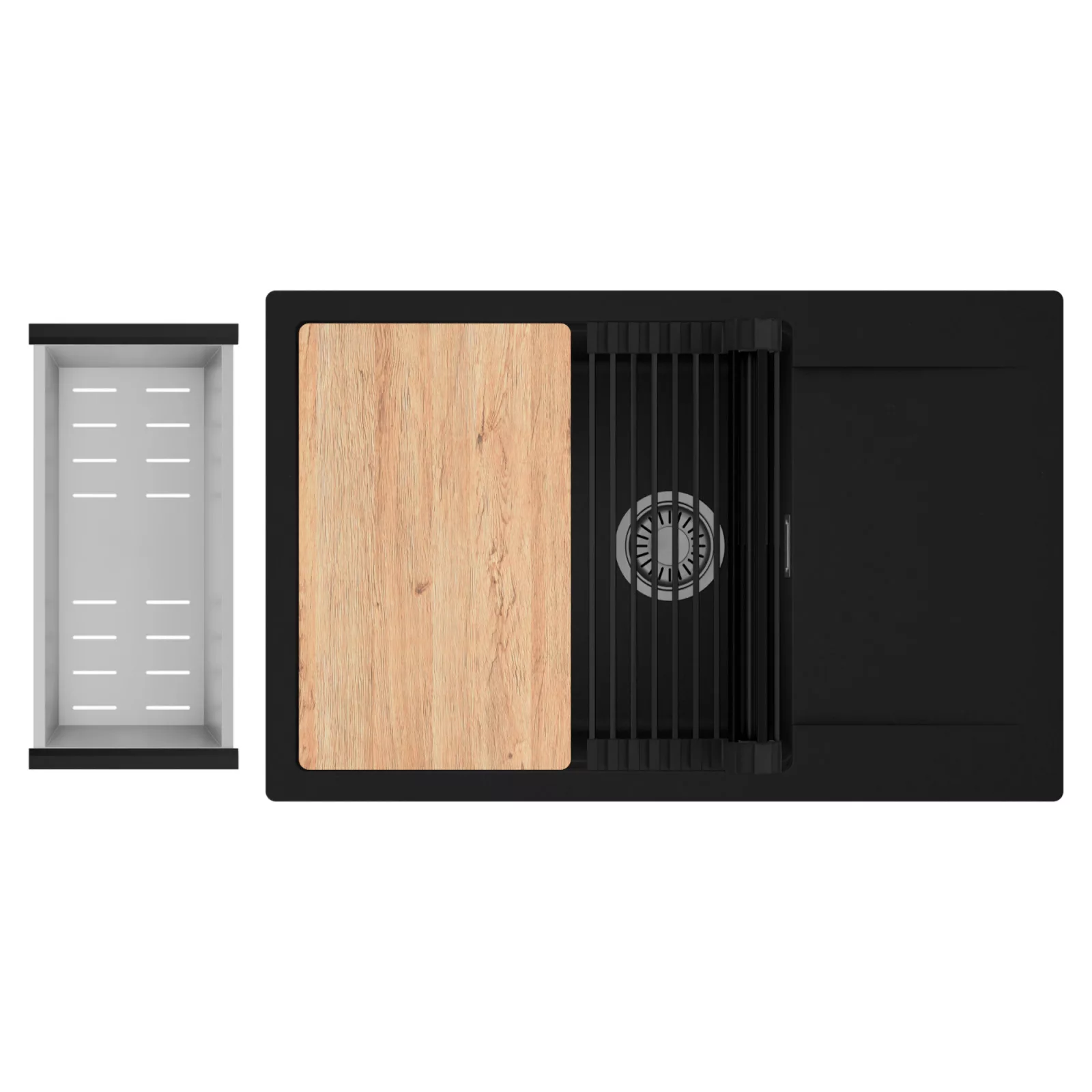 HD Onyx 78-XL egymedencés mosogatótálca szett, vágódeszkával, csepegtetőráccsal és kosárral, matt fekete