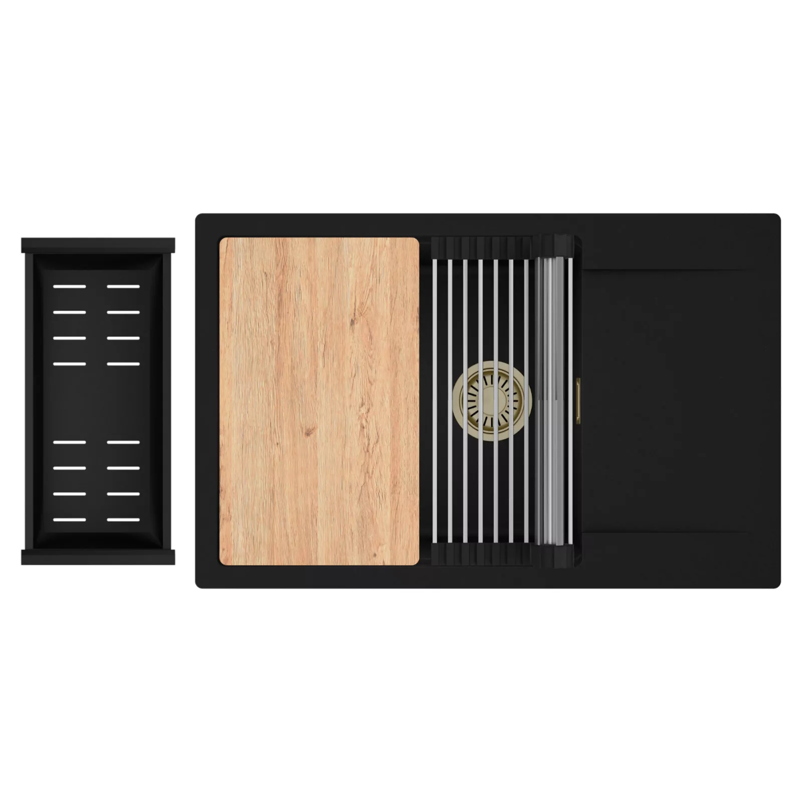 HD Onyx 78-XL egymedencés mosogatótálca szett, vágódeszkával, csepegtetőráccsal és kosárral, matt fekete