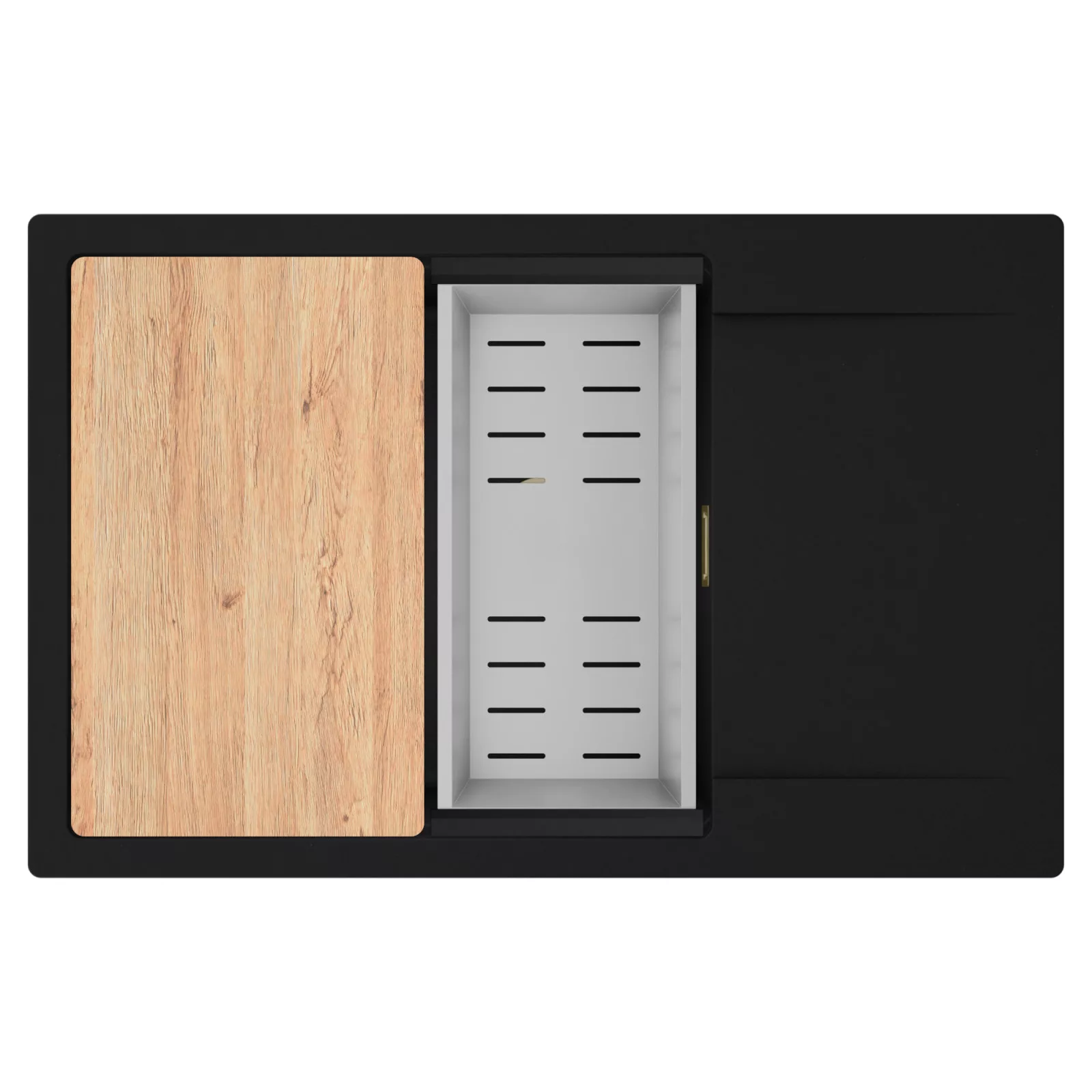 HD Onyx 78-XL egymedencés mosogatótálca szett, vágódeszkával és csepegtetőkosárral, matt fekete