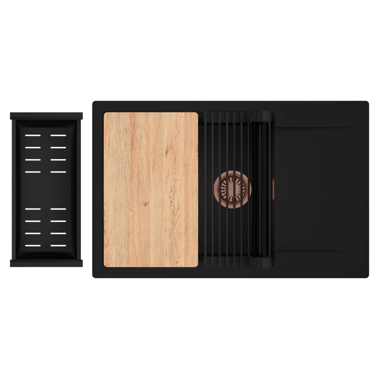 HD Onyx 78-XL egymedencés mosogatótálca szett, vágódeszkával, csepegtetőráccsal és kosárral, matt fekete