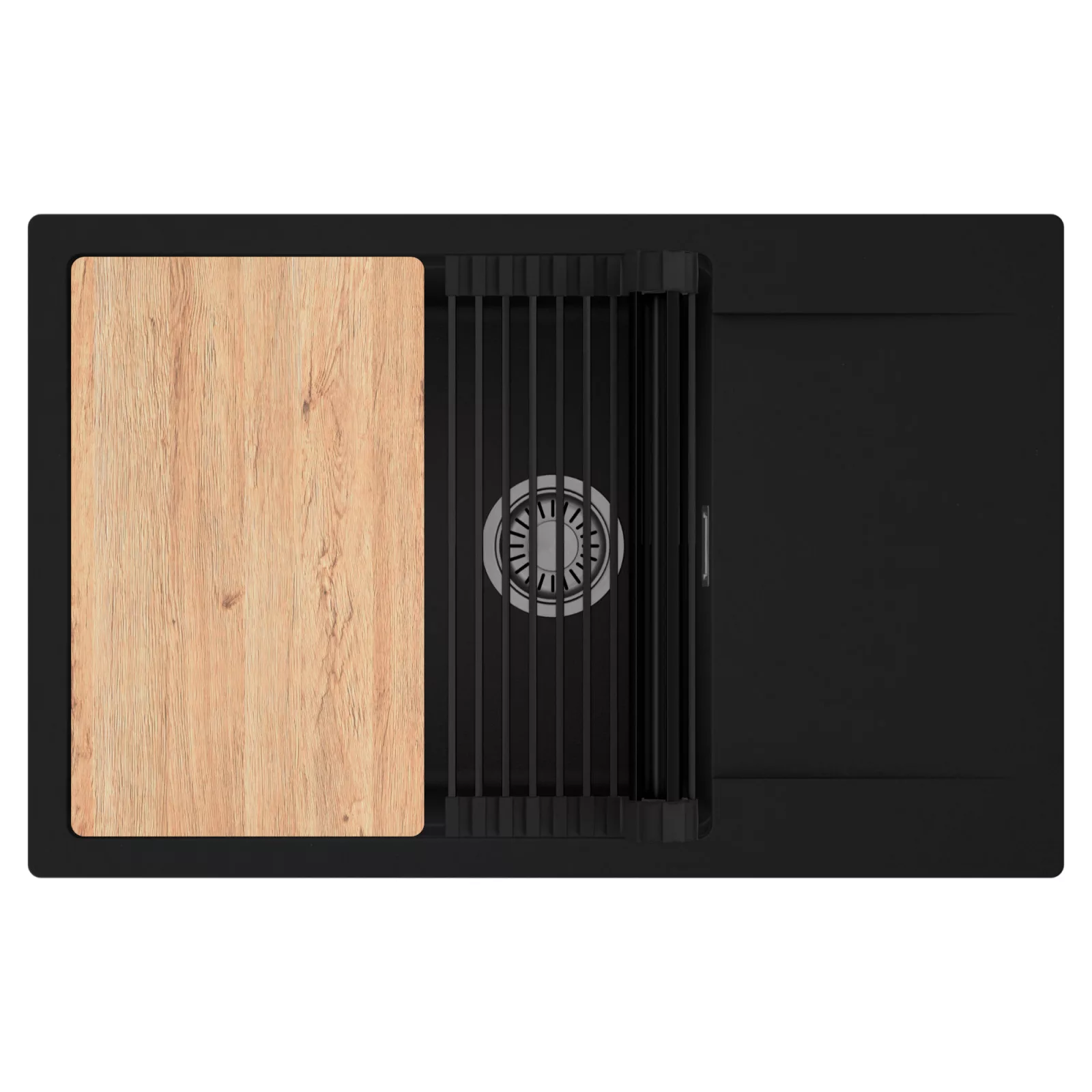 HD Onyx 78-XL egymedencés mosogatótálca szett, vágódeszkával és csepegtetőráccsal, matt fekete