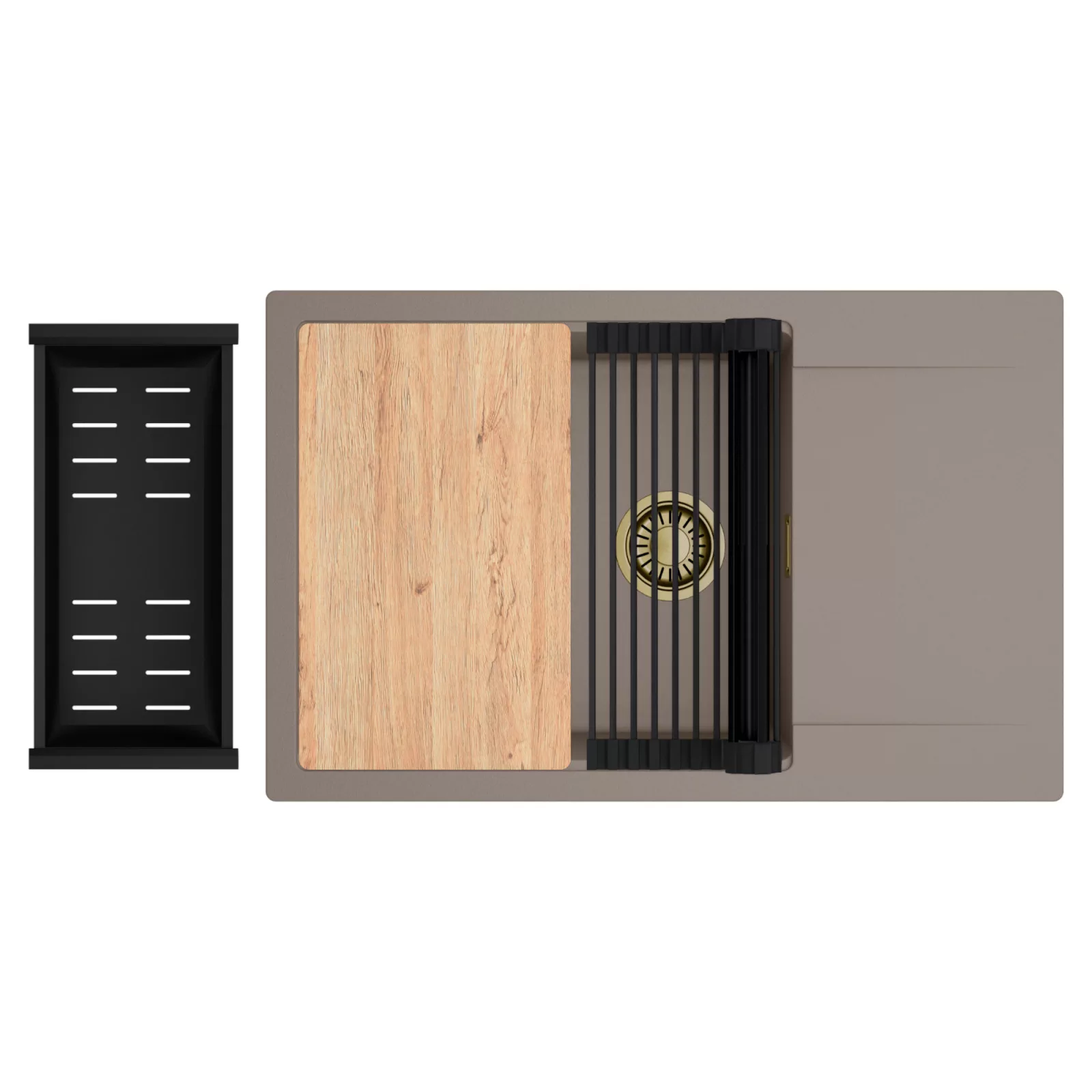 HD Onyx Tortora 78-XL egymedencés mosogatótálca szett, vágódeszkával, csepegtetőráccsal és kosárral, tortora