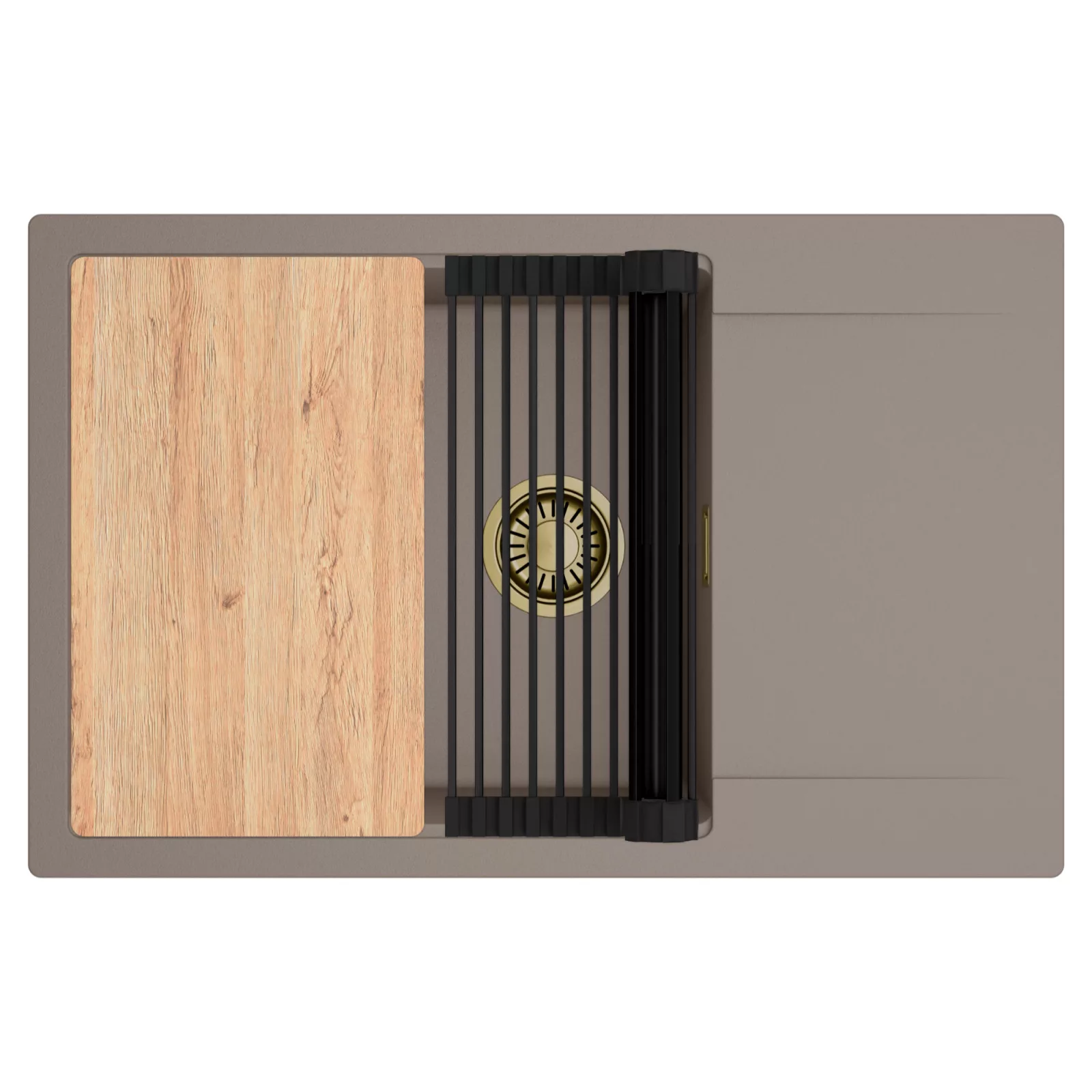 HD Onyx Tortora 78-XL egymedencés mosogatótálca szett, vágódeszkával és csepegtetőráccsal, tortora