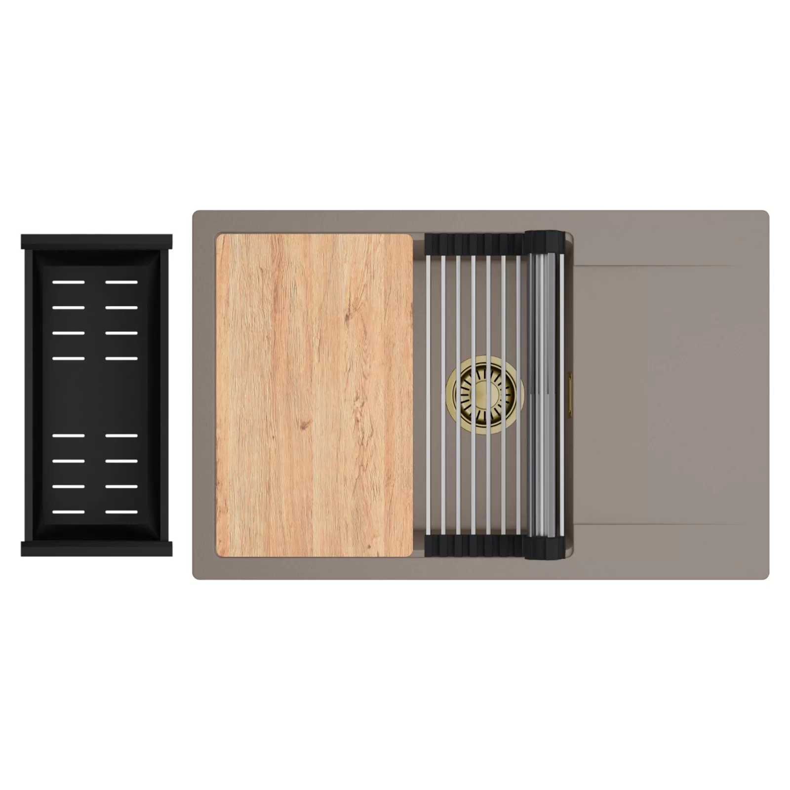 HD Onyx Tortora 78-XL egymedencés mosogatótálca szett, vágódeszkával, csepegtetőráccsal és kosárral, tortora