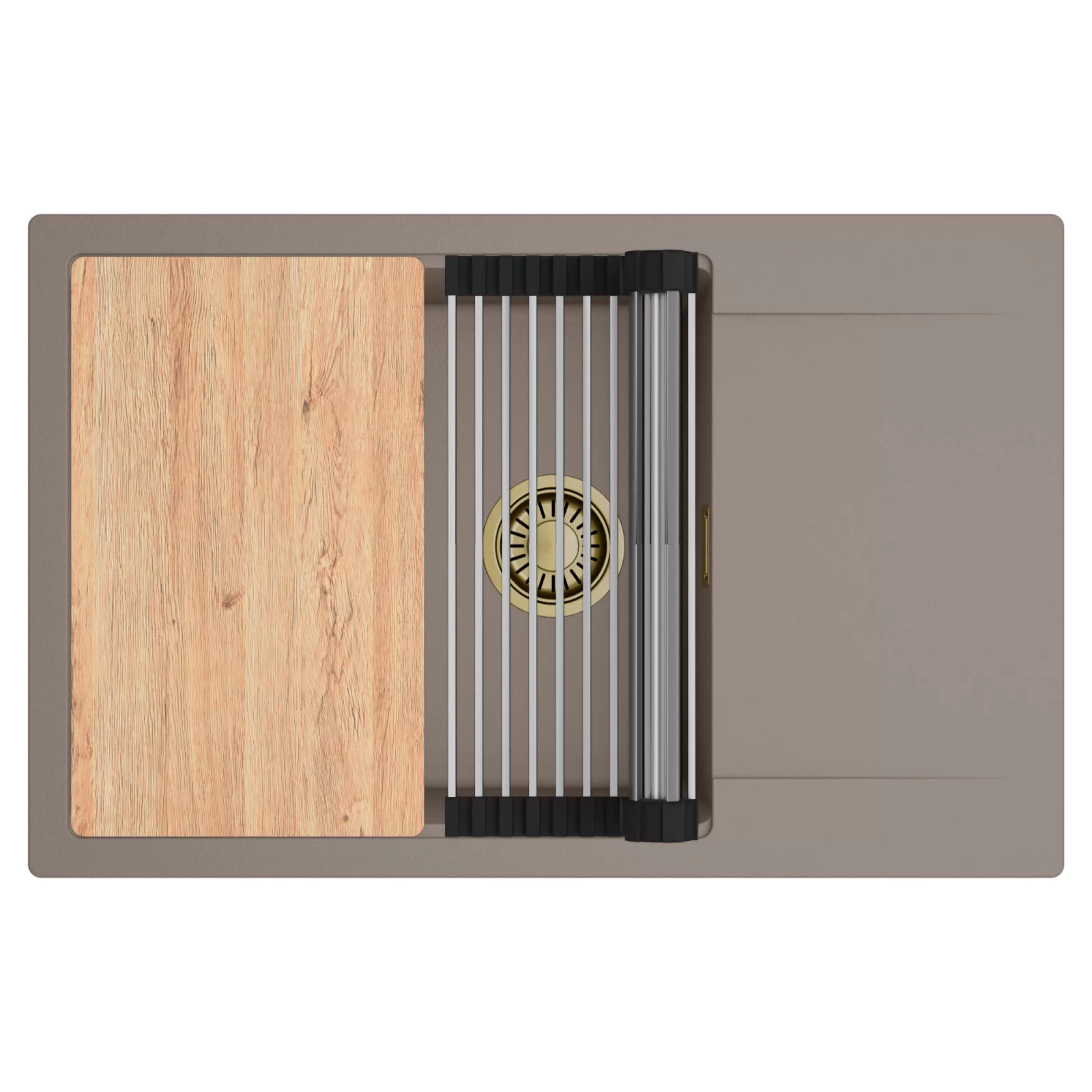 HD Onyx Tortora 78-XL egymedencés mosogatótálca szett, vágódeszkával és csepegtetőráccsal, tortora