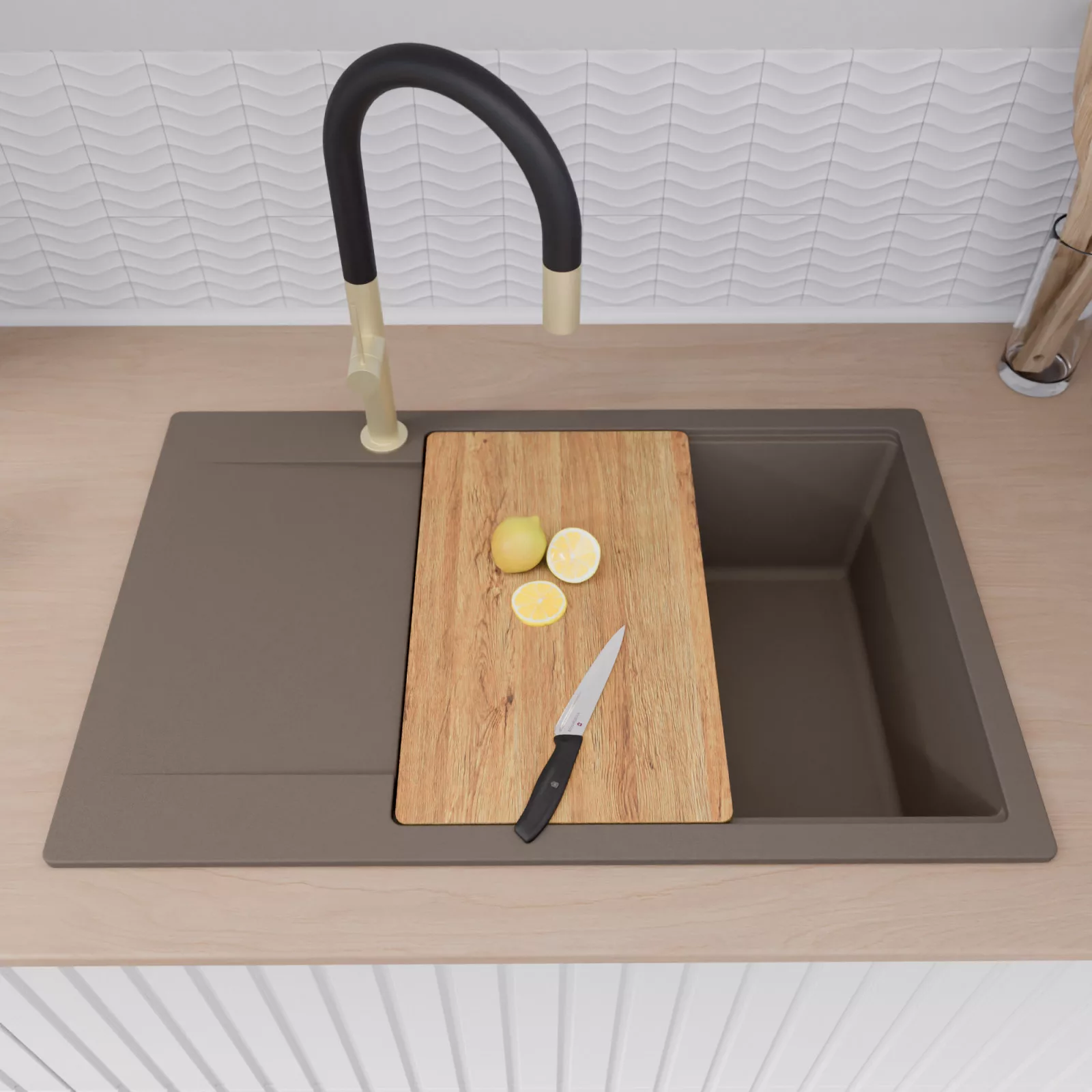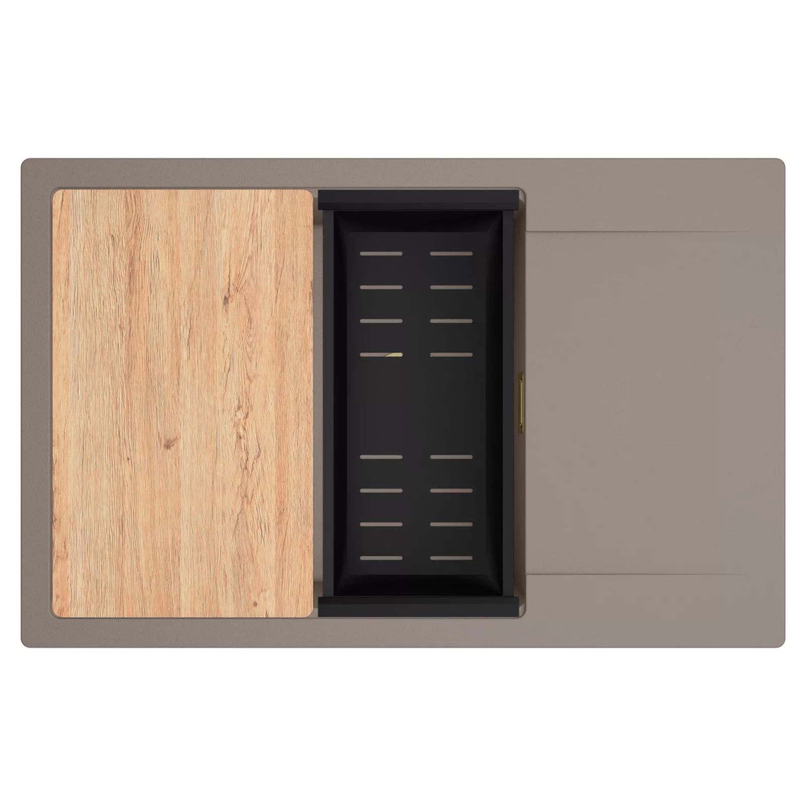 HD Onyx Tortora 78-XL egymedencés mosogatótálca szett, vágódeszkával és csepegtetőkosárral, tortora