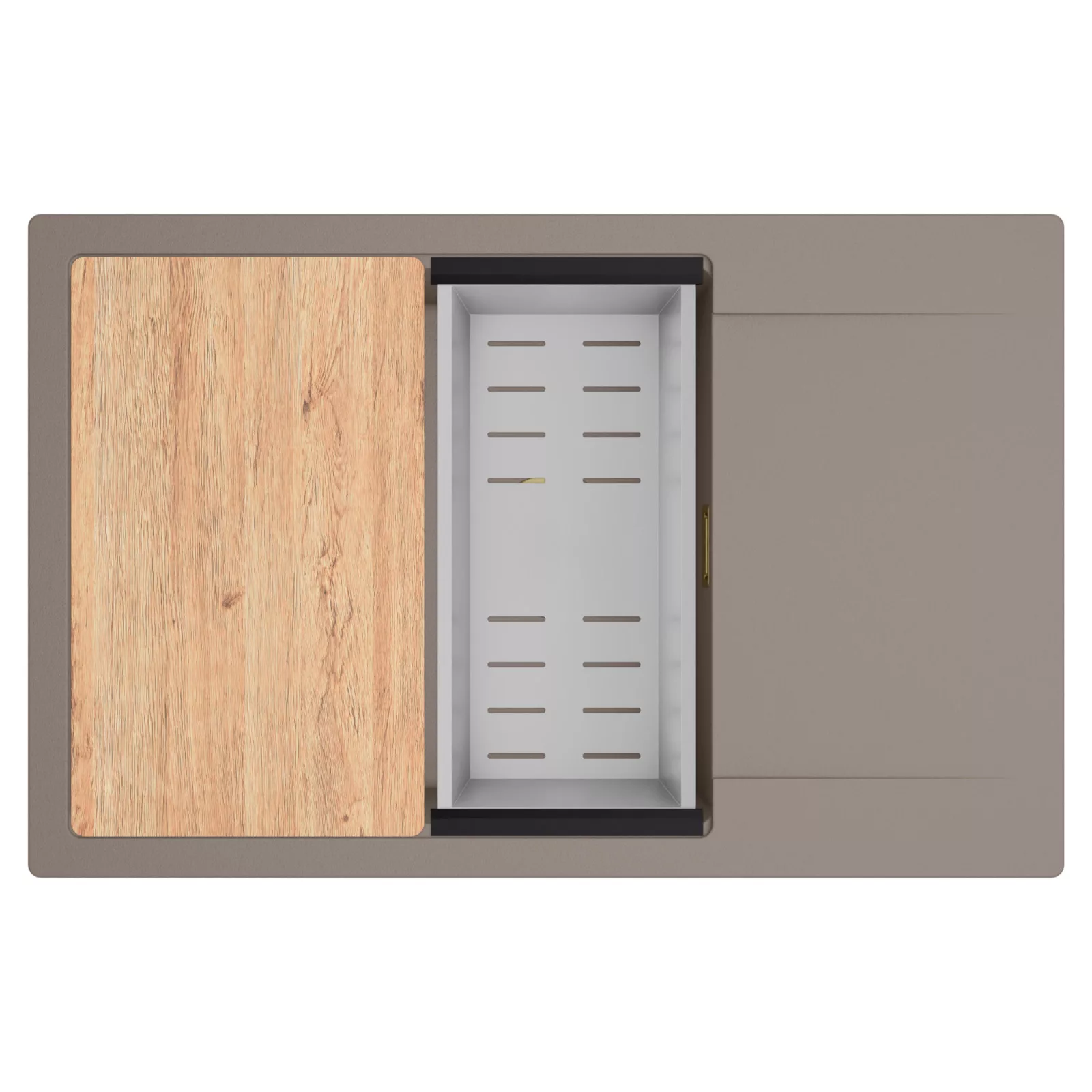 HD Onyx Tortora 78-XL egymedencés mosogatótálca szett, vágódeszkával és csepegtetőkosárral, tortora