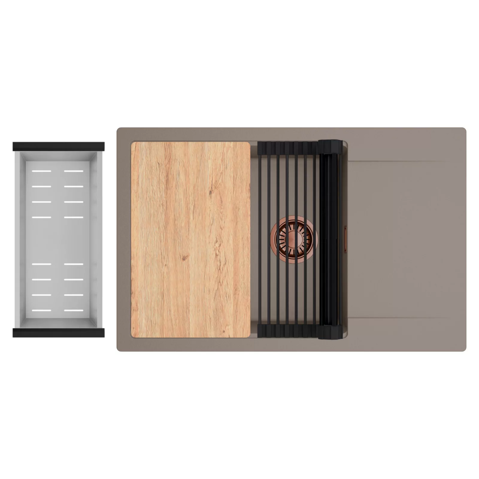 HD Onyx Tortora 78-XL egymedencés mosogatótálca szett, vágódeszkával, csepegtetőráccsal és kosárral, tortora