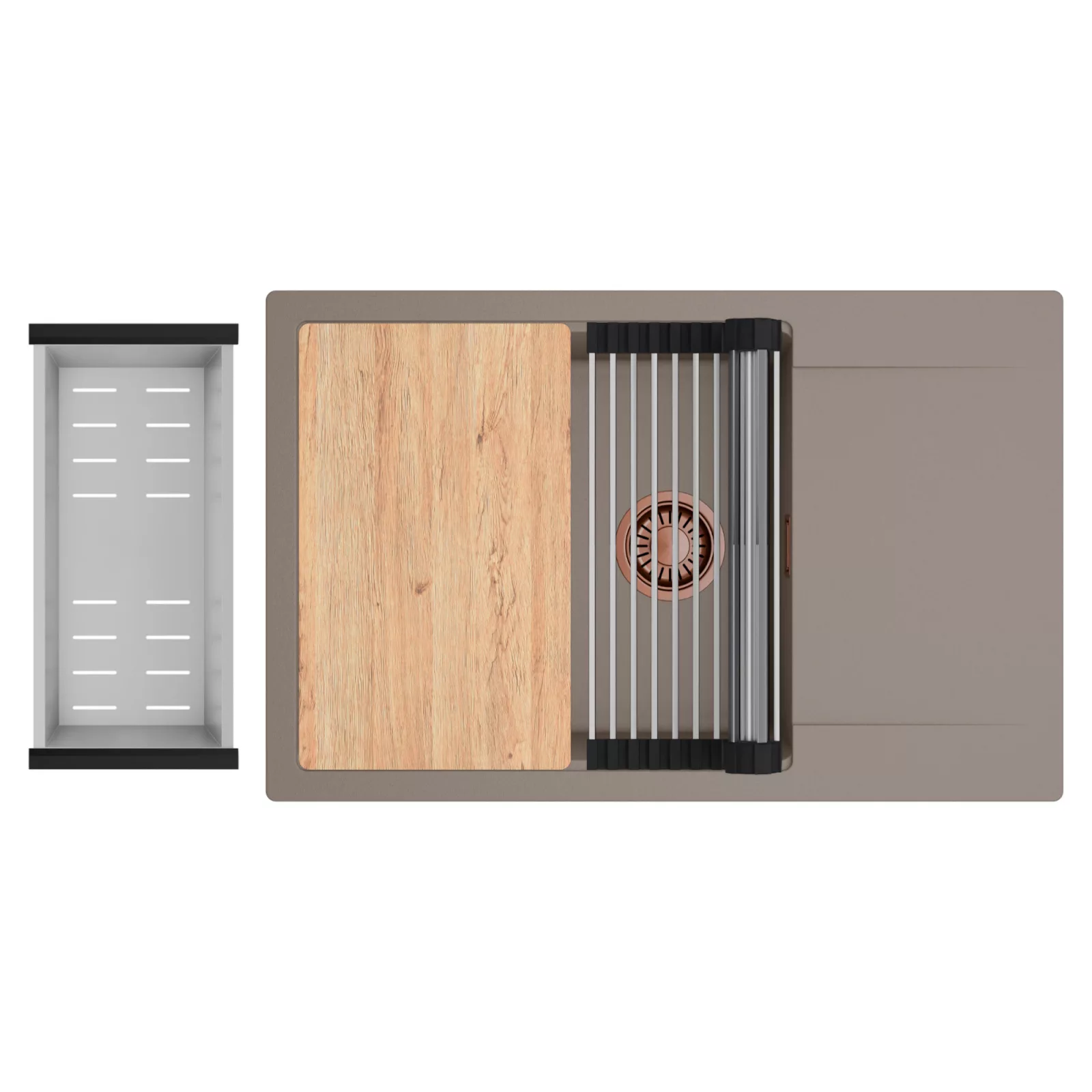 HD Onyx Tortora 78-XL egymedencés mosogatótálca szett, vágódeszkával, csepegtetőráccsal és kosárral, tortora