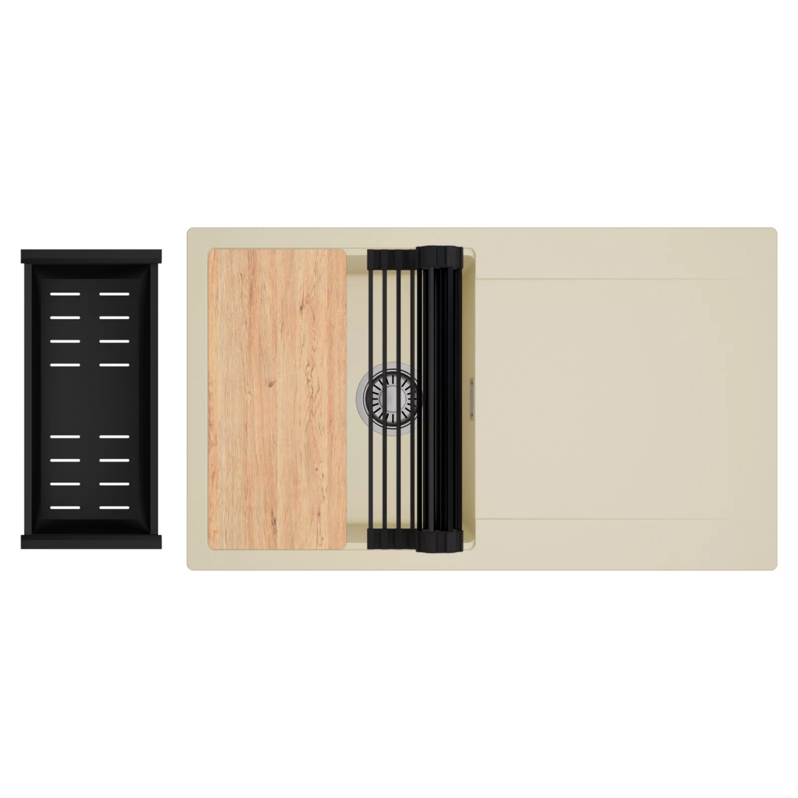HD Onyx Beige 86 egymedencés mosogatótálca szett, vágódeszkával, csepegtetőráccsal és kosárral, soft bézs