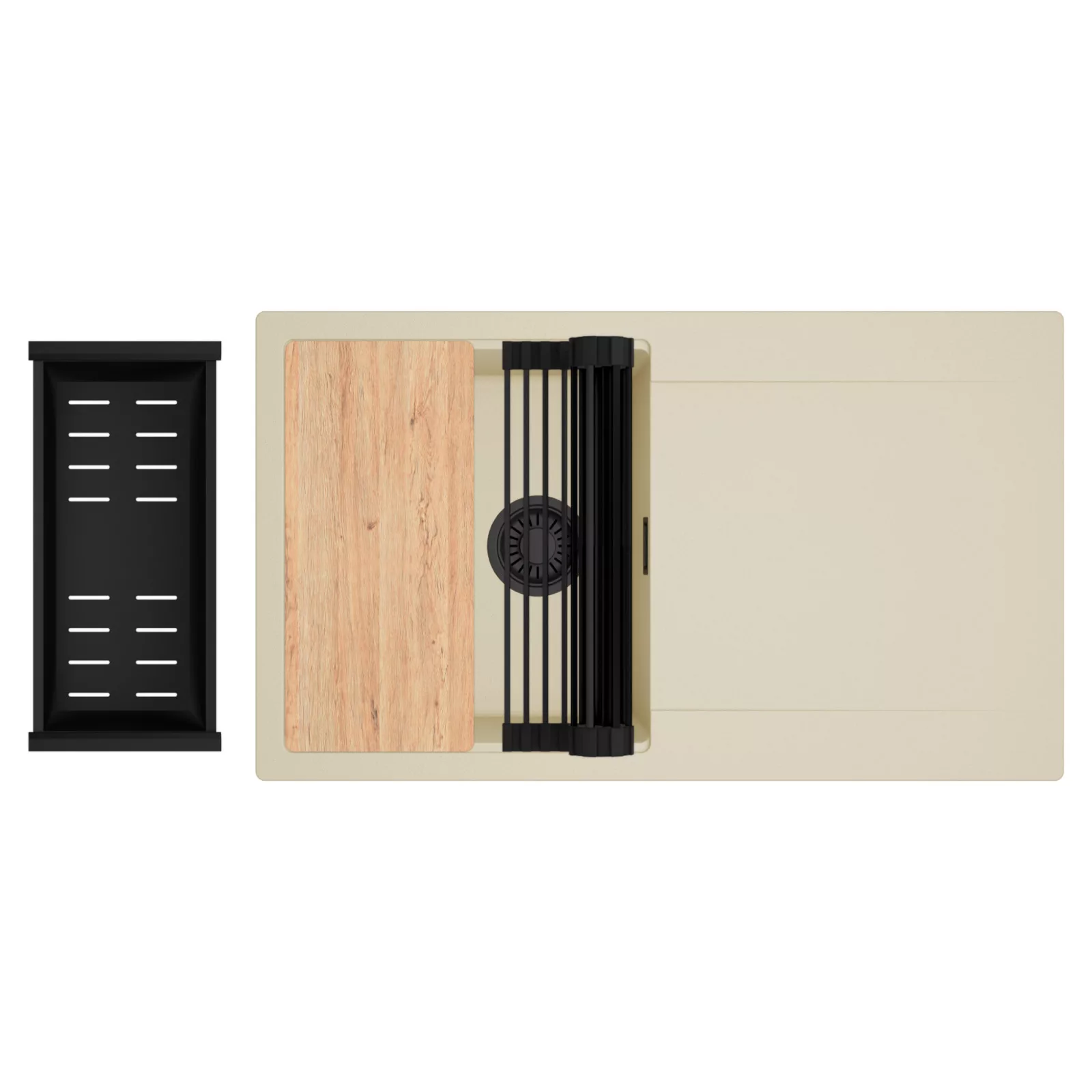 HD Onyx Beige 86 egymedencés mosogatótálca szett, vágódeszkával, csepegtetőráccsal és kosárral, soft bézs