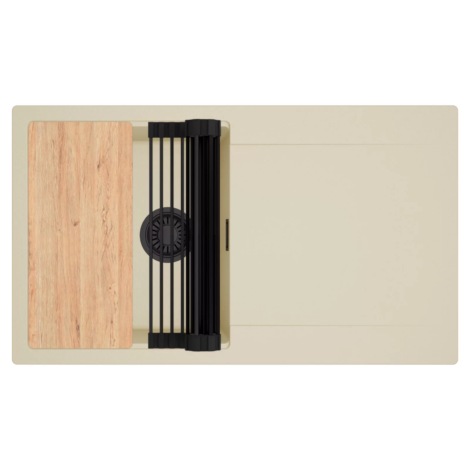 HD Onyx Beige 86 egymedencés mosogatótálca szett, vágódeszkával és csepegtetőráccsal, soft bézs