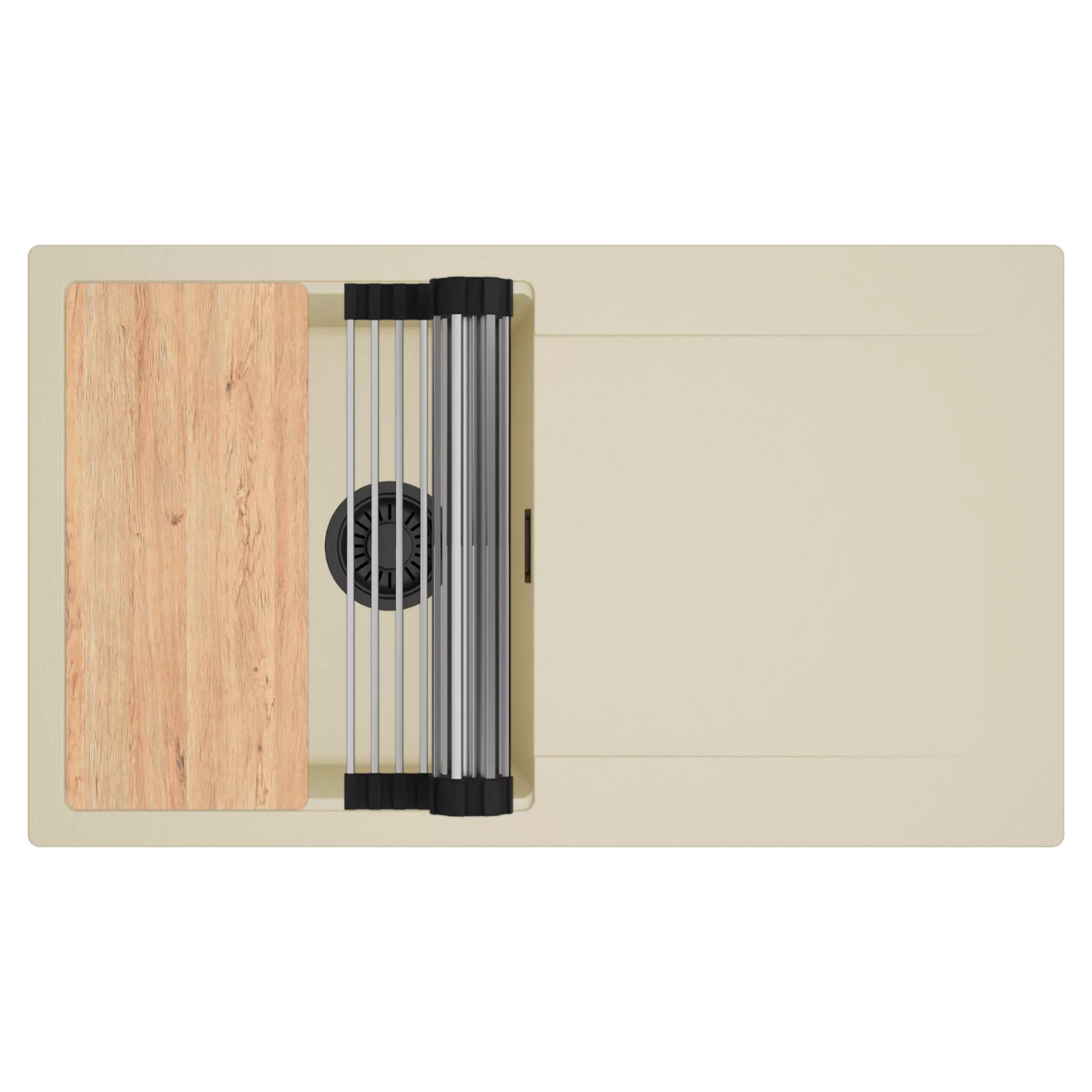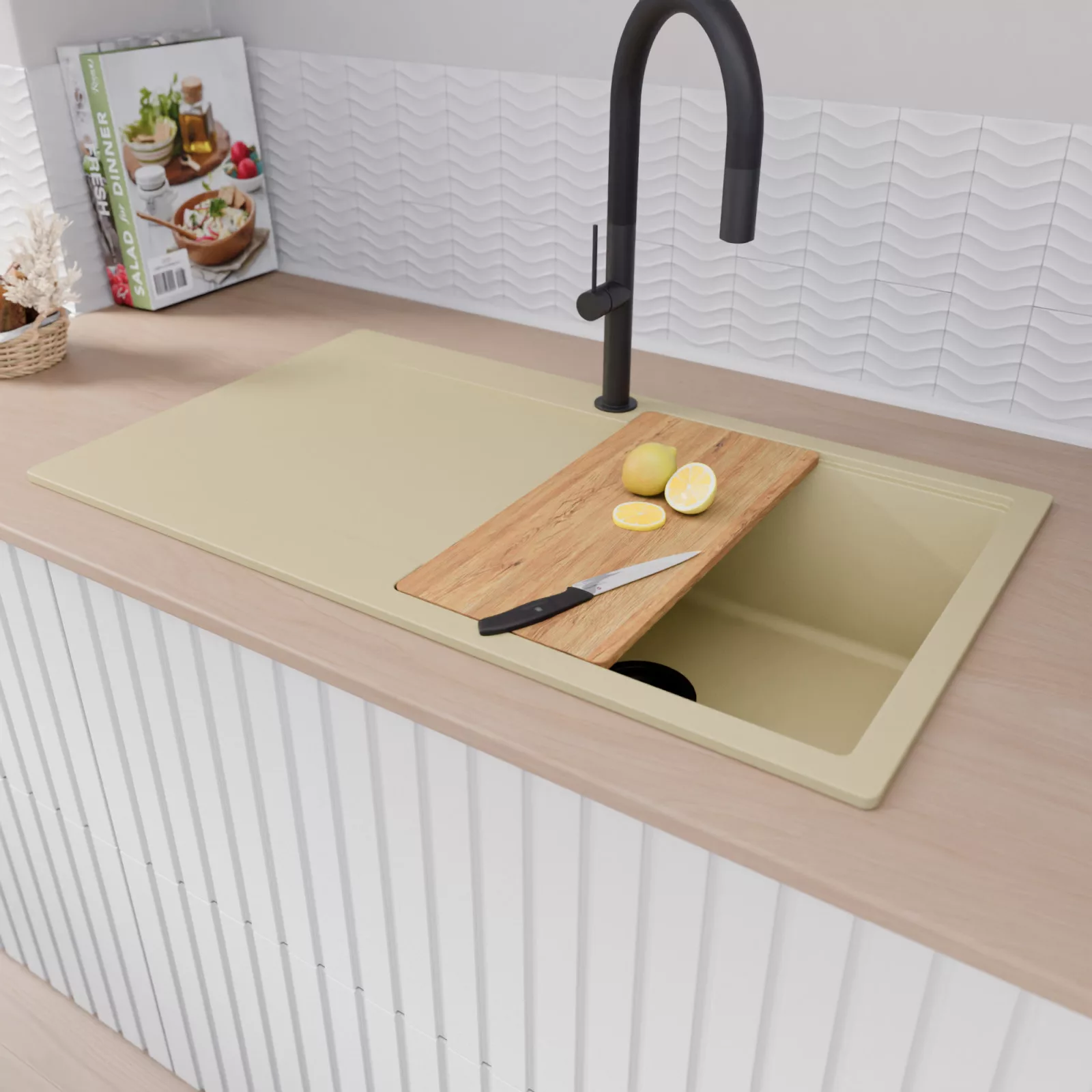 HD Onyx Beige 86 egymedencés mosogatótálca szett, vágódeszkával és csepegtetőráccsal, soft bézs