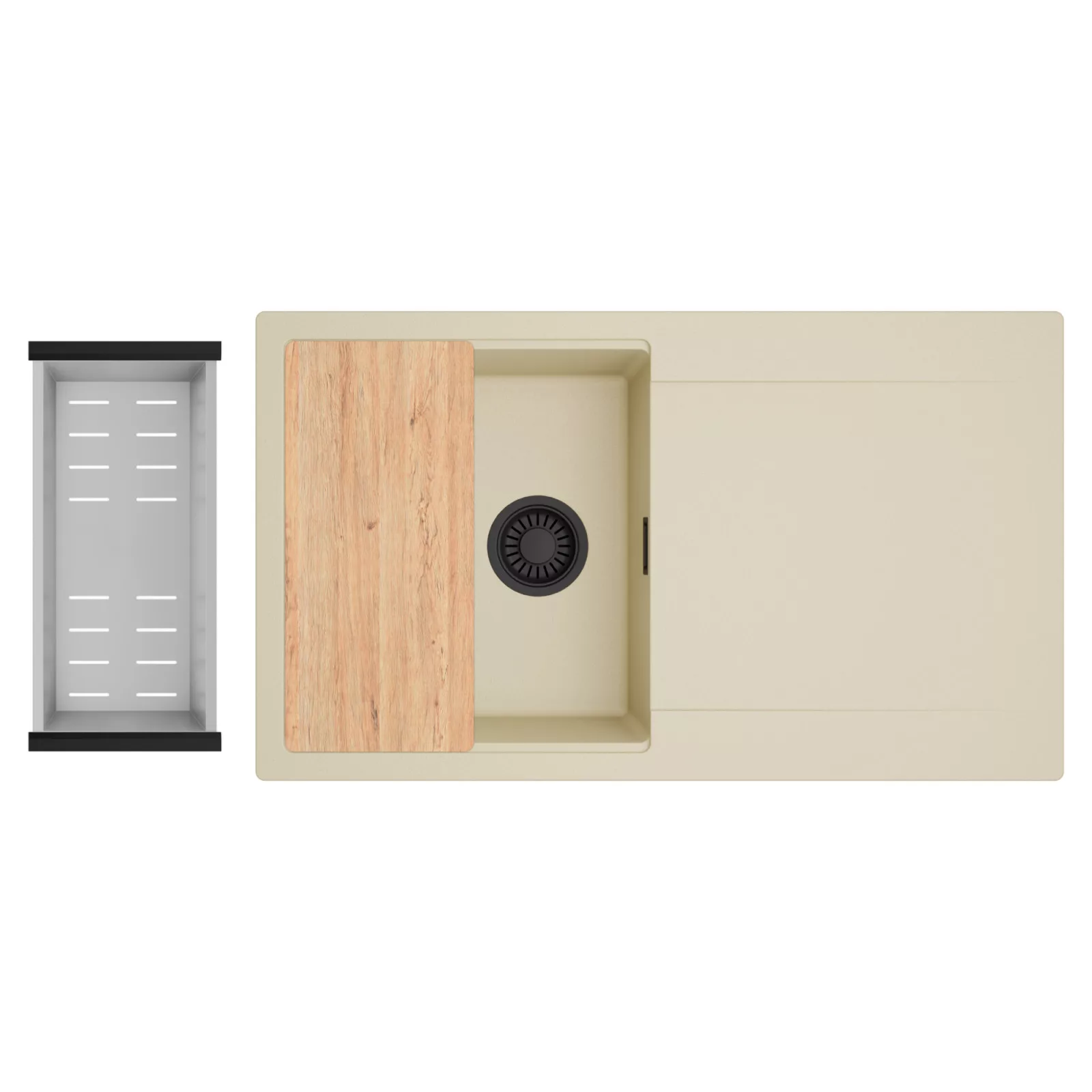 HD Onyx Beige 86 egymedencés mosogatótálca szett, vágódeszkával és csepegtetőkosárral, soft bézs