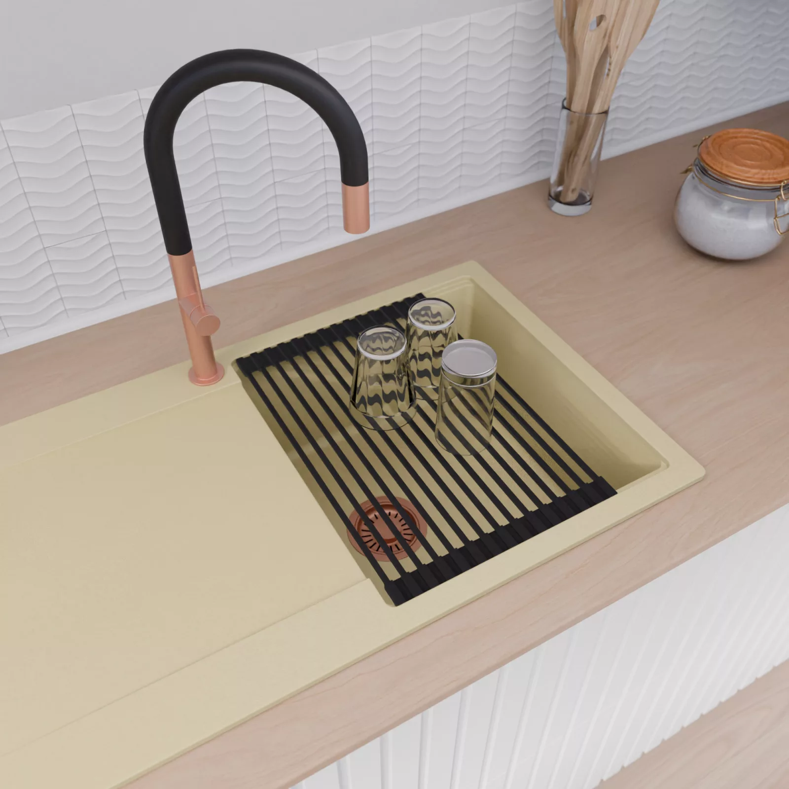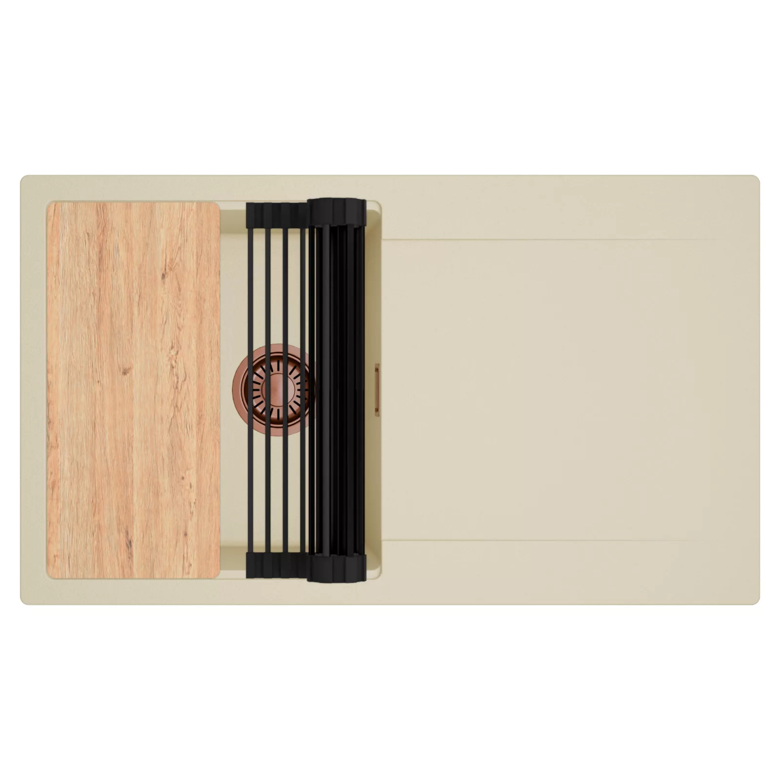 HD Onyx Beige 86 egymedencés mosogatótálca szett, vágódeszkával és csepegtetőráccsal, soft bézs