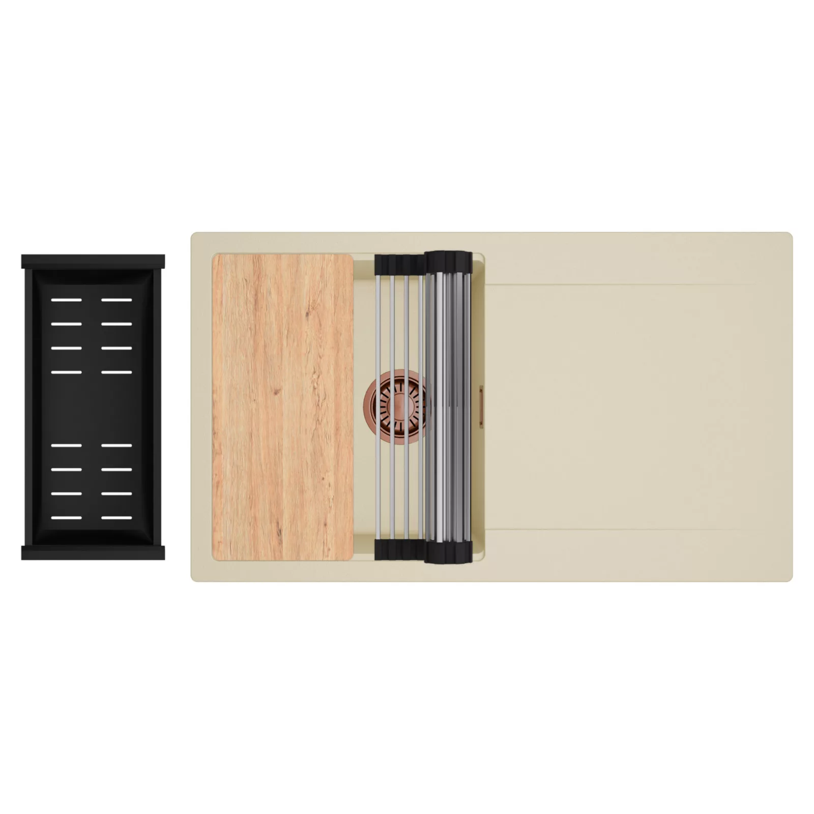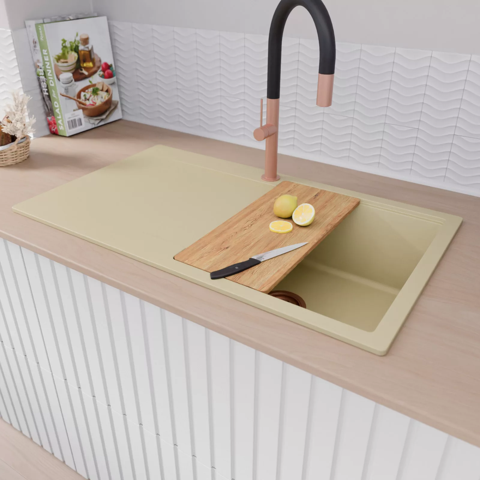 HD Onyx Beige 86 egymedencés mosogatótálca szett, vágódeszkával, csepegtetőráccsal és kosárral, soft bézs