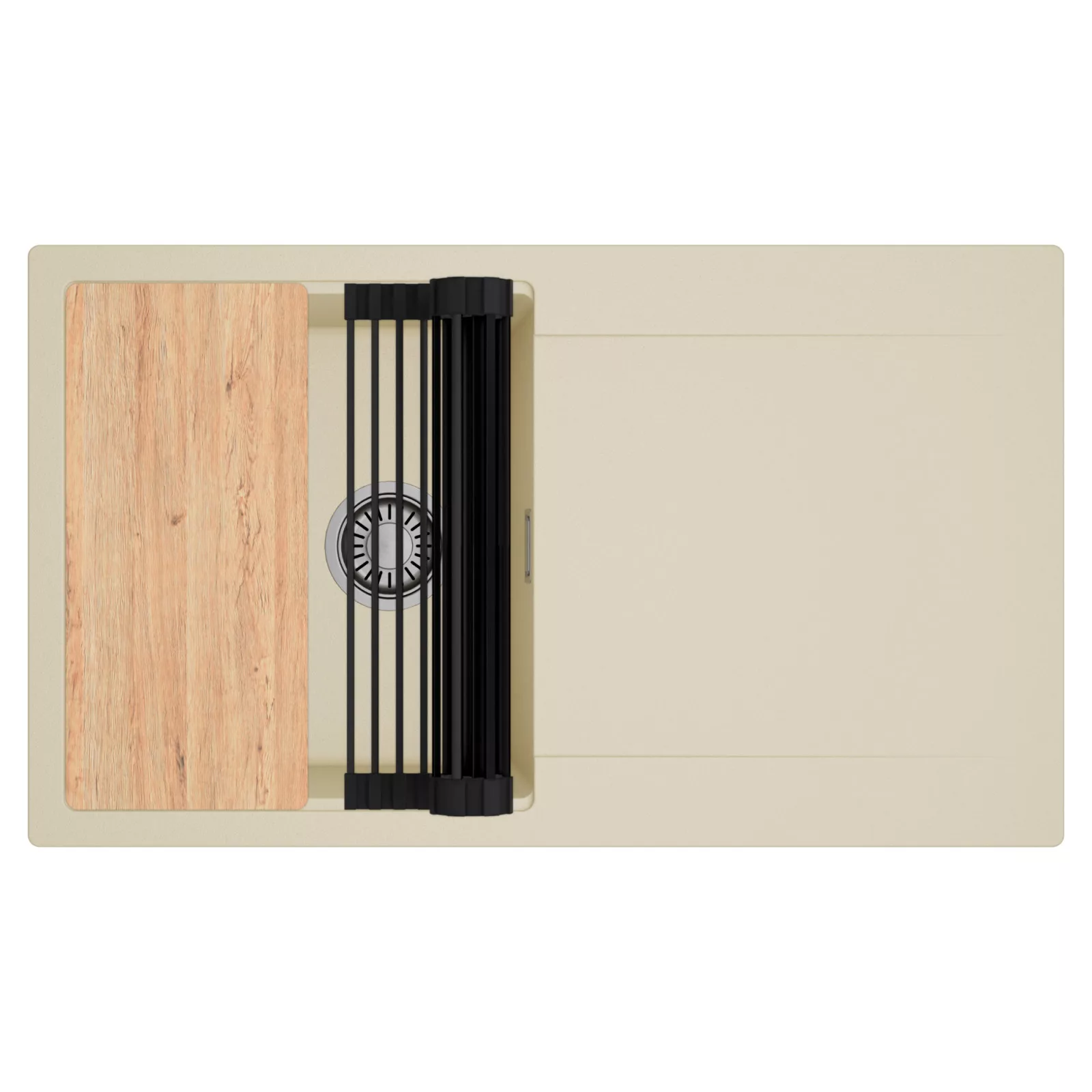 HD Onyx Beige 86 egymedencés mosogatótálca szett, vágódeszkával és csepegtetőráccsal, soft bézs
