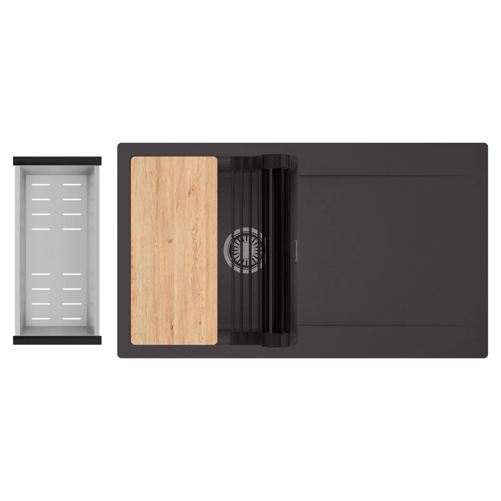 HD Onyx 86 egymedencés mosogatótálca szett, vágódeszkával, csepegtetőráccsal és kosárral, matt antracit