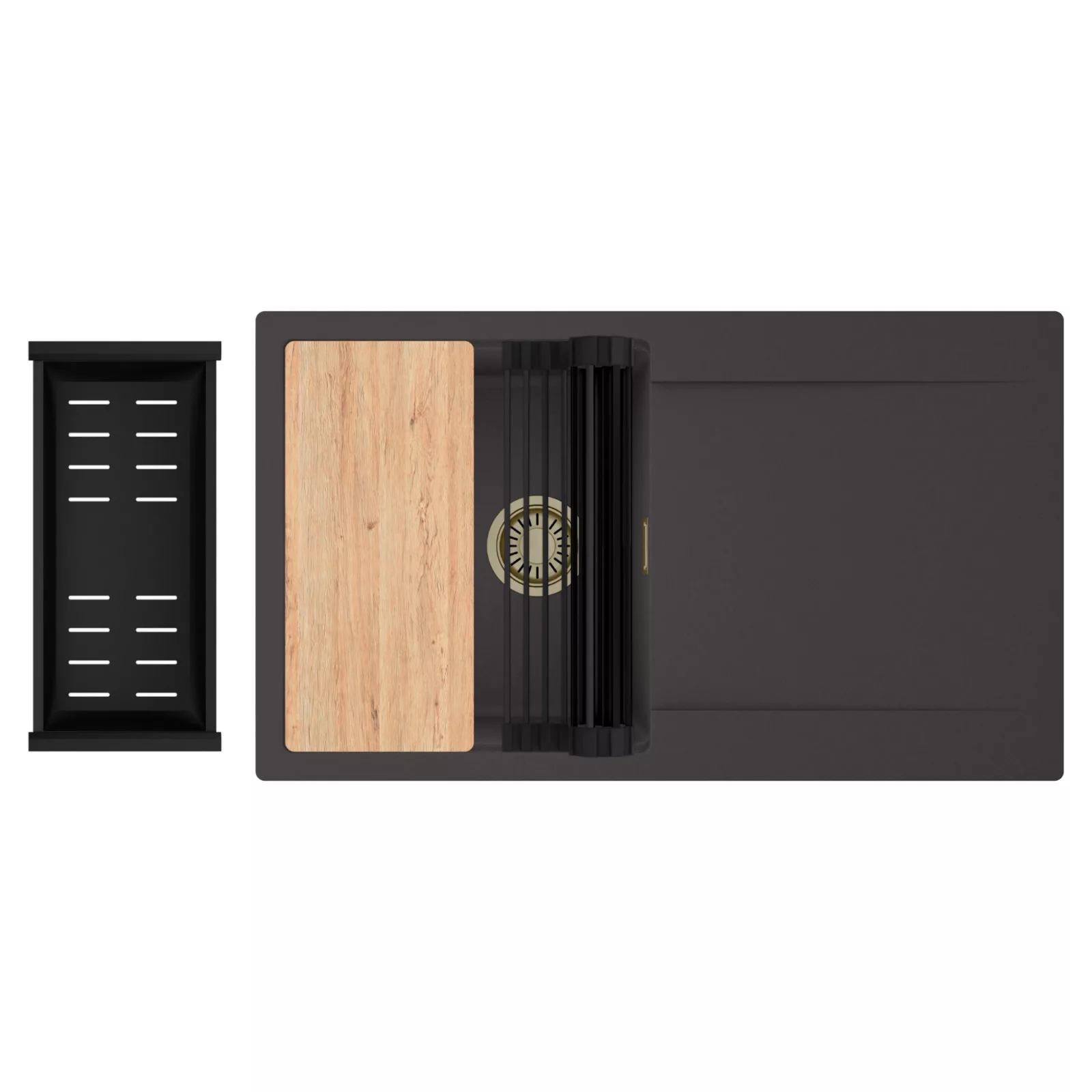 HD Onyx 86 egymedencés mosogatótálca szett, vágódeszkával, csepegtetőráccsal és kosárral, matt antracit