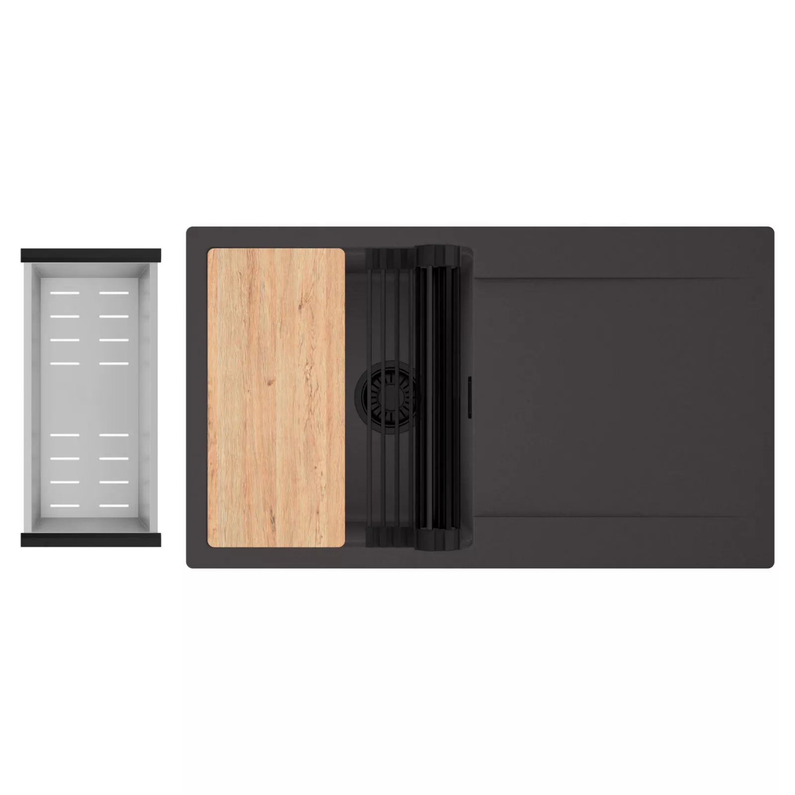 HD Onyx 86 egymedencés mosogatótálca szett, vágódeszkával, csepegtetőráccsal és kosárral, matt antracit