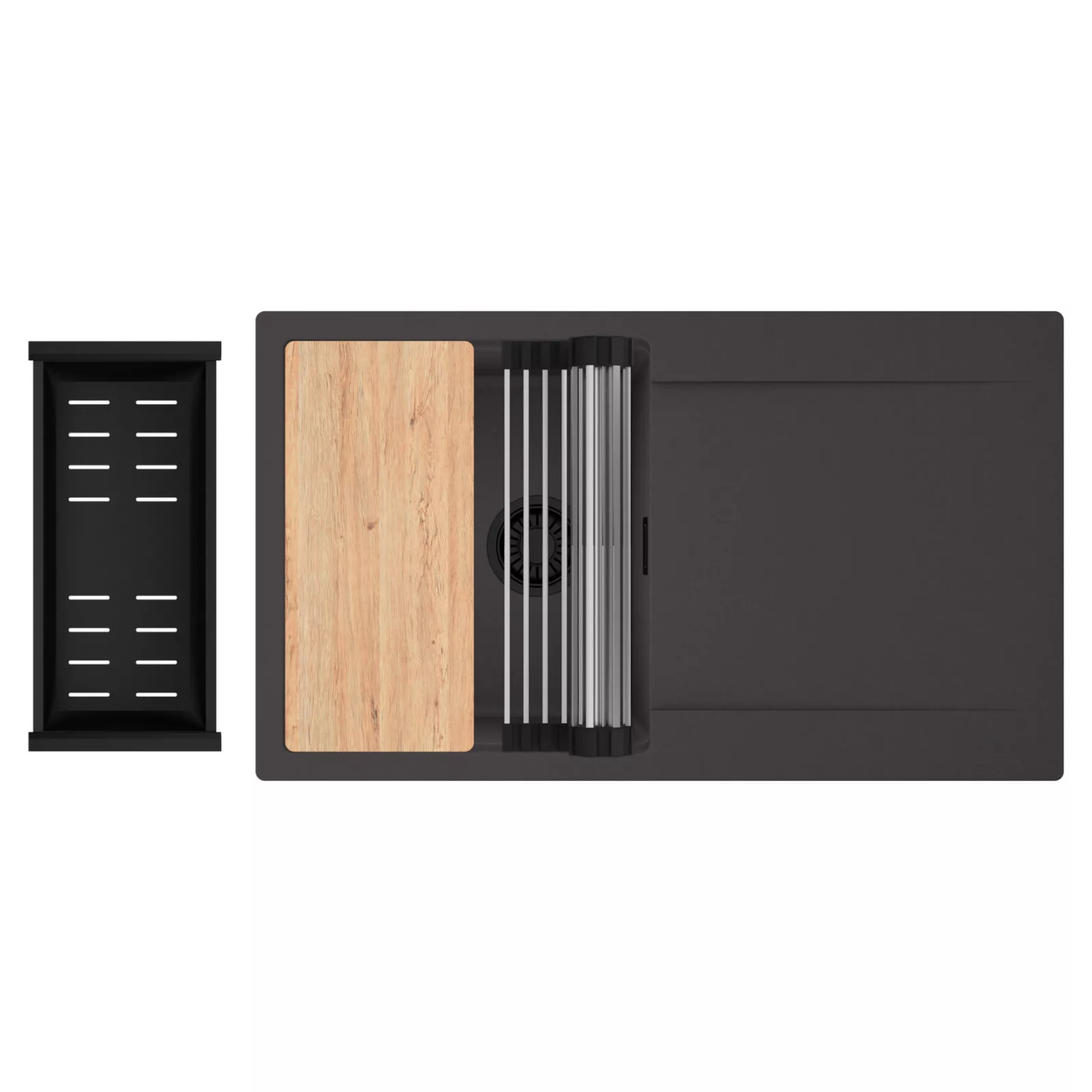 HD Onyx 86 egymedencés mosogatótálca szett, vágódeszkával, csepegtetőráccsal és kosárral, matt antracit