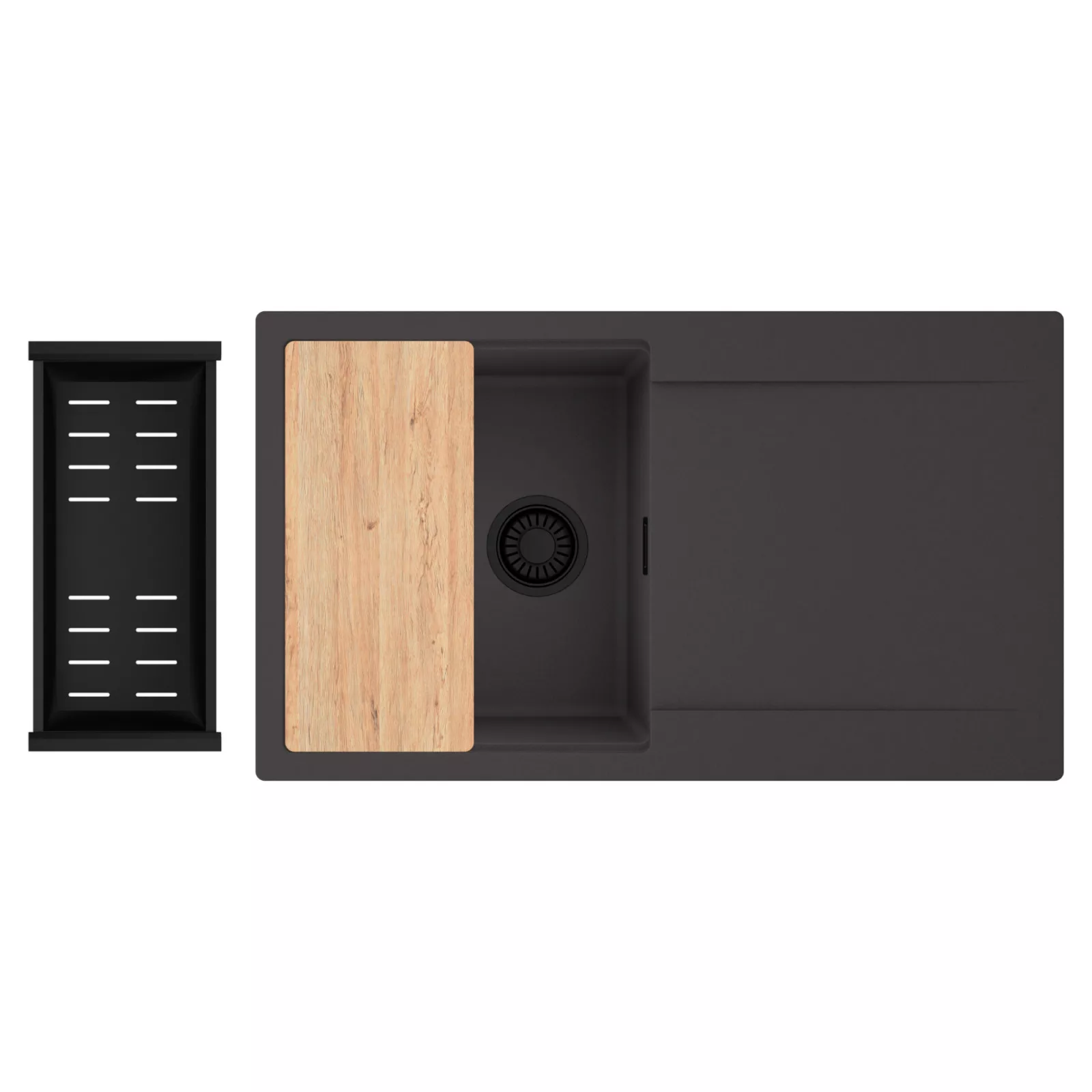 HD Onyx 86 egymedencés mosogatótálca szett, vágódeszkával és csepegtetőkosárral, matt antracit