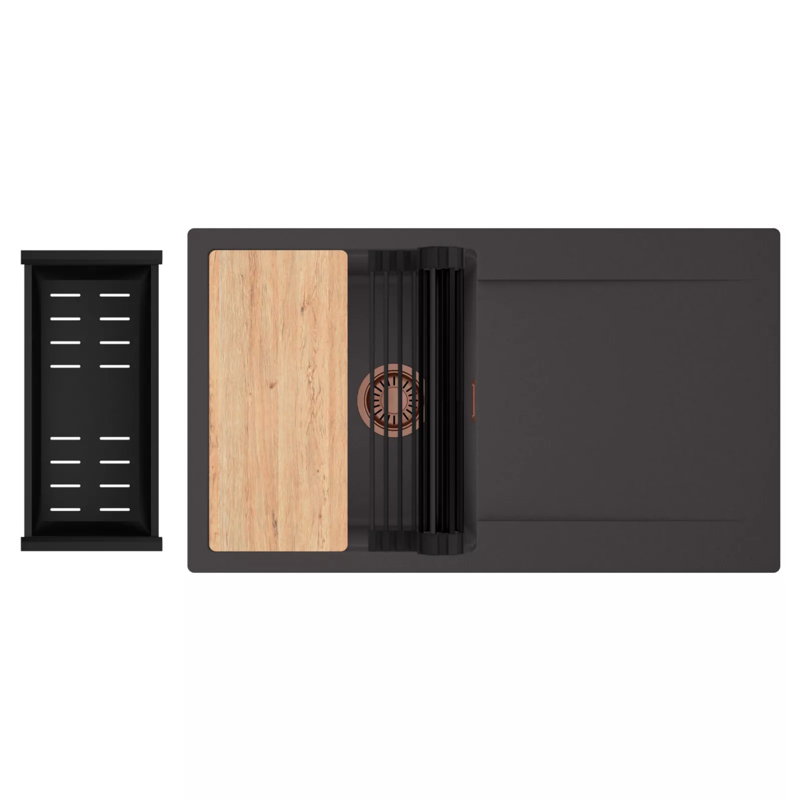 HD Onyx 86 egymedencés mosogatótálca szett, vágódeszkával, csepegtetőráccsal és kosárral, matt antracit