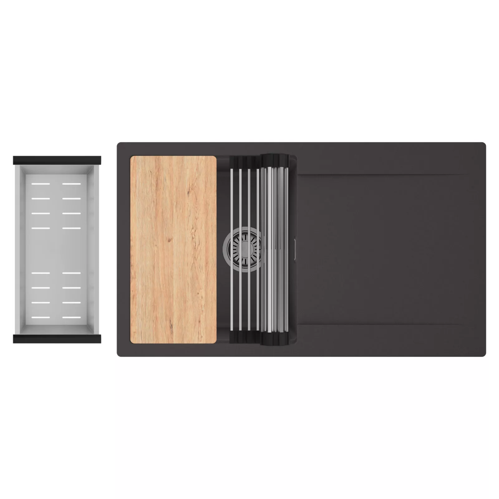 HD Onyx 86 egymedencés mosogatótálca szett, vágódeszkával, csepegtetőráccsal és kosárral, matt antracit