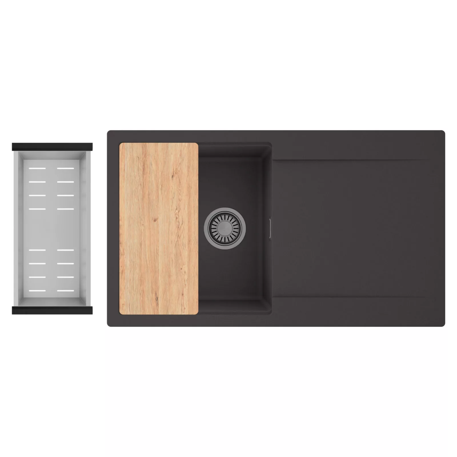 HD Onyx 86 egymedencés mosogatótálca szett, vágódeszkával és csepegtetőkosárral, matt antracit