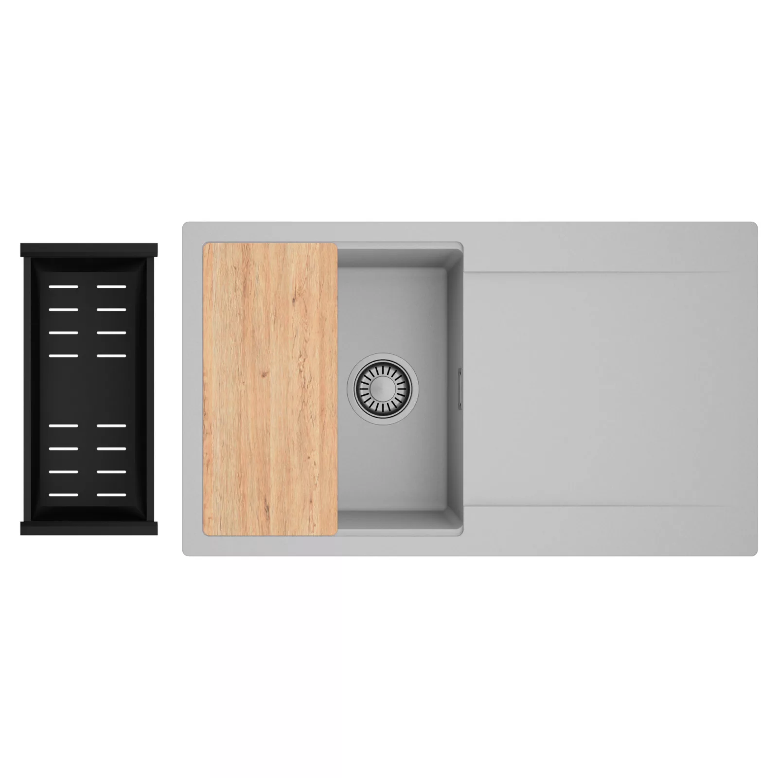 HD Onyx Grey 86 egymedencés mosogatótálca szett, vágódeszkával és csepegtetőkosárral, alpesi szürke