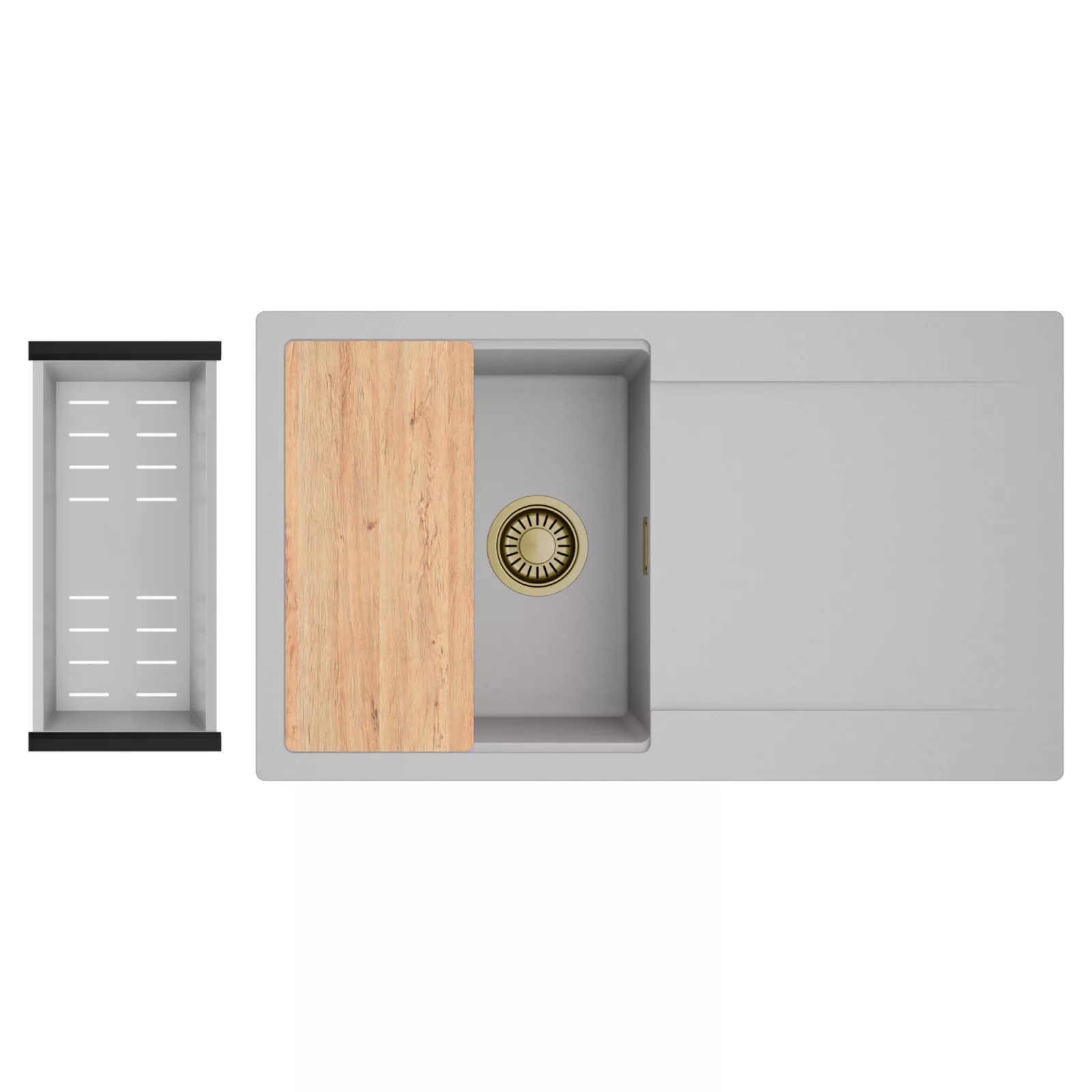 HD Onyx Grey 86 egymedencés mosogatótálca szett, vágódeszkával és csepegtetőkosárral, alpesi szürke