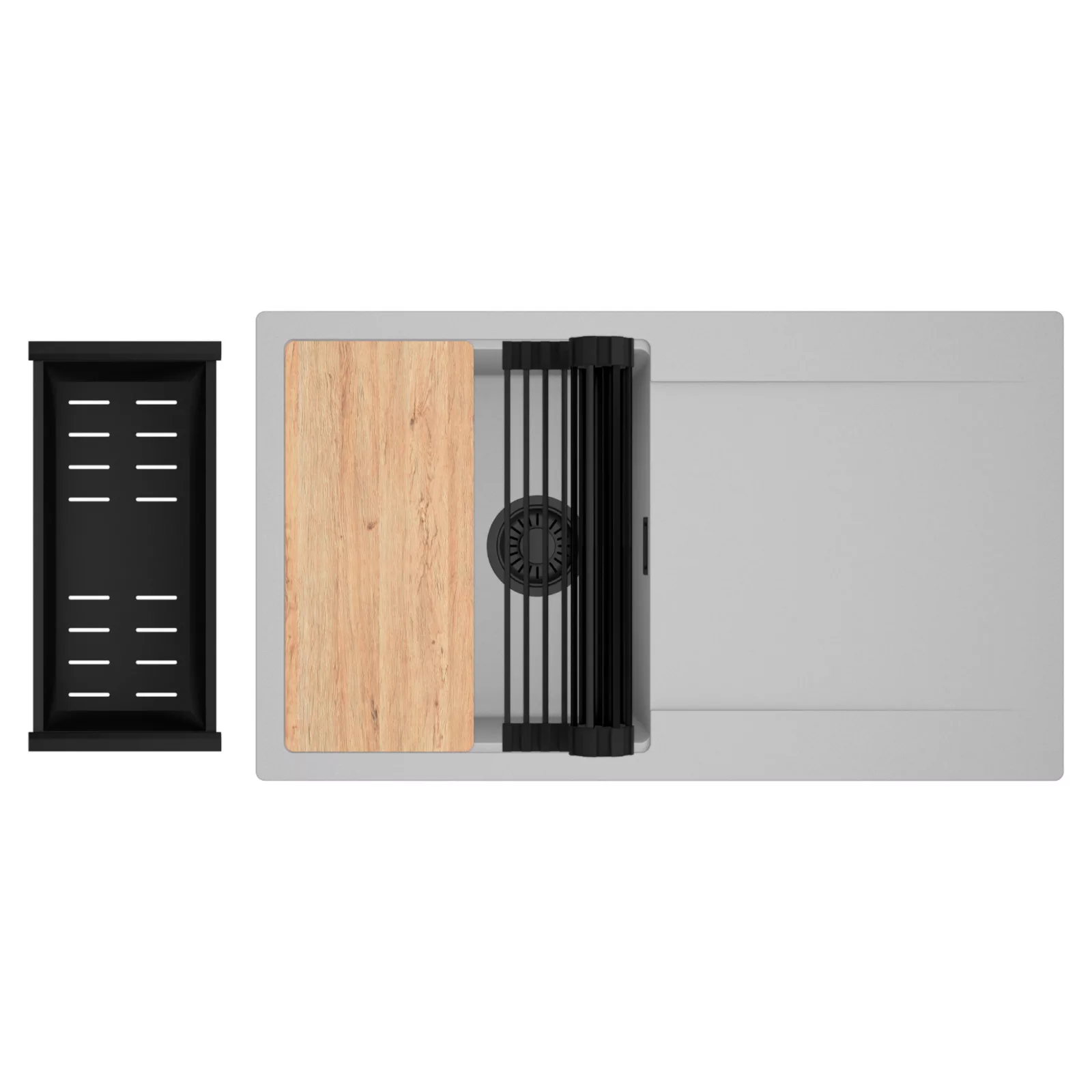 HD Onyx Grey 86 egymedencés mosogatótálca szett, vágódeszkával, csepegtetőráccsal és kosárral, alpesi szürke