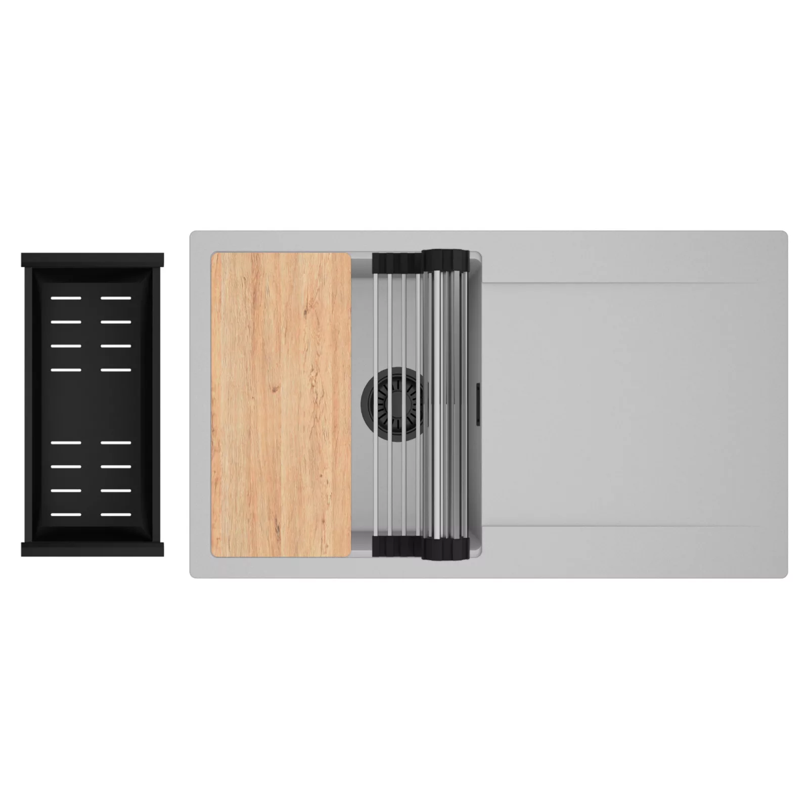HD Onyx Grey 86 egymedencés mosogatótálca szett, vágódeszkával, csepegtetőráccsal és kosárral, alpesi szürke