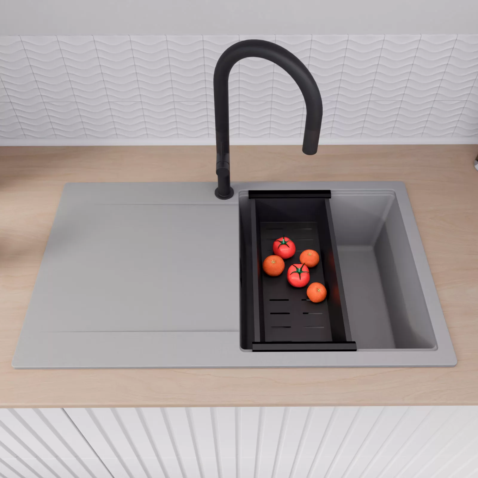 A mosogató prémium minőségű gránit kompozitból készült. Letisztult megjelenése mellett rendkívül praktikus, így bármilyen stílusú konyhába harmonikusan illeszkedik. A strapabíró gránit anyag hosszú távon is megbízható használatot garantál.