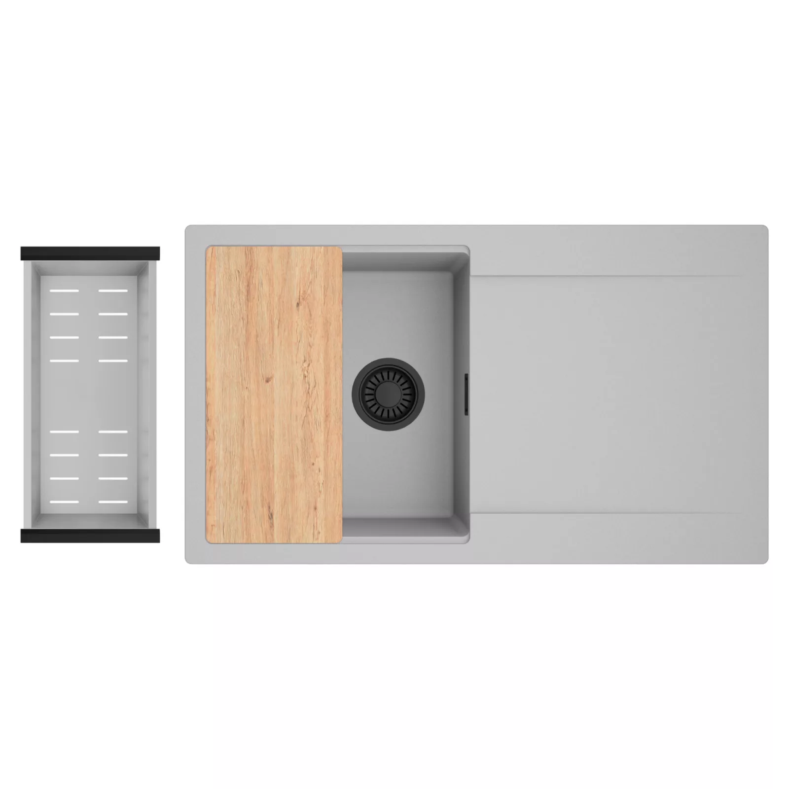 HD Onyx Grey 86 egymedencés mosogatótálca szett, vágódeszkával és csepegtetőkosárral, alpesi szürke
