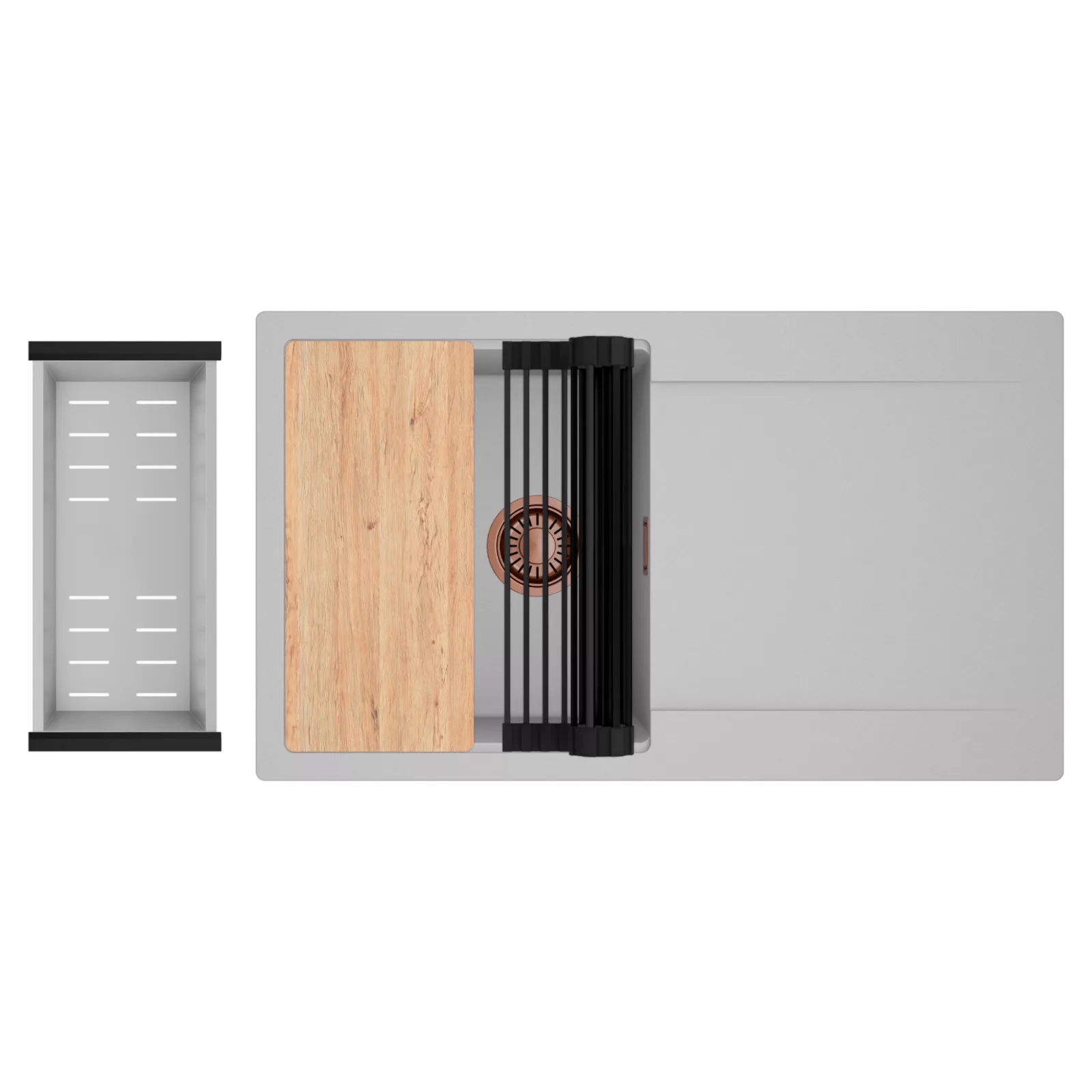 HD Onyx Grey 86 egymedencés mosogatótálca szett, vágódeszkával, csepegtetőráccsal és kosárral, alpesi szürke