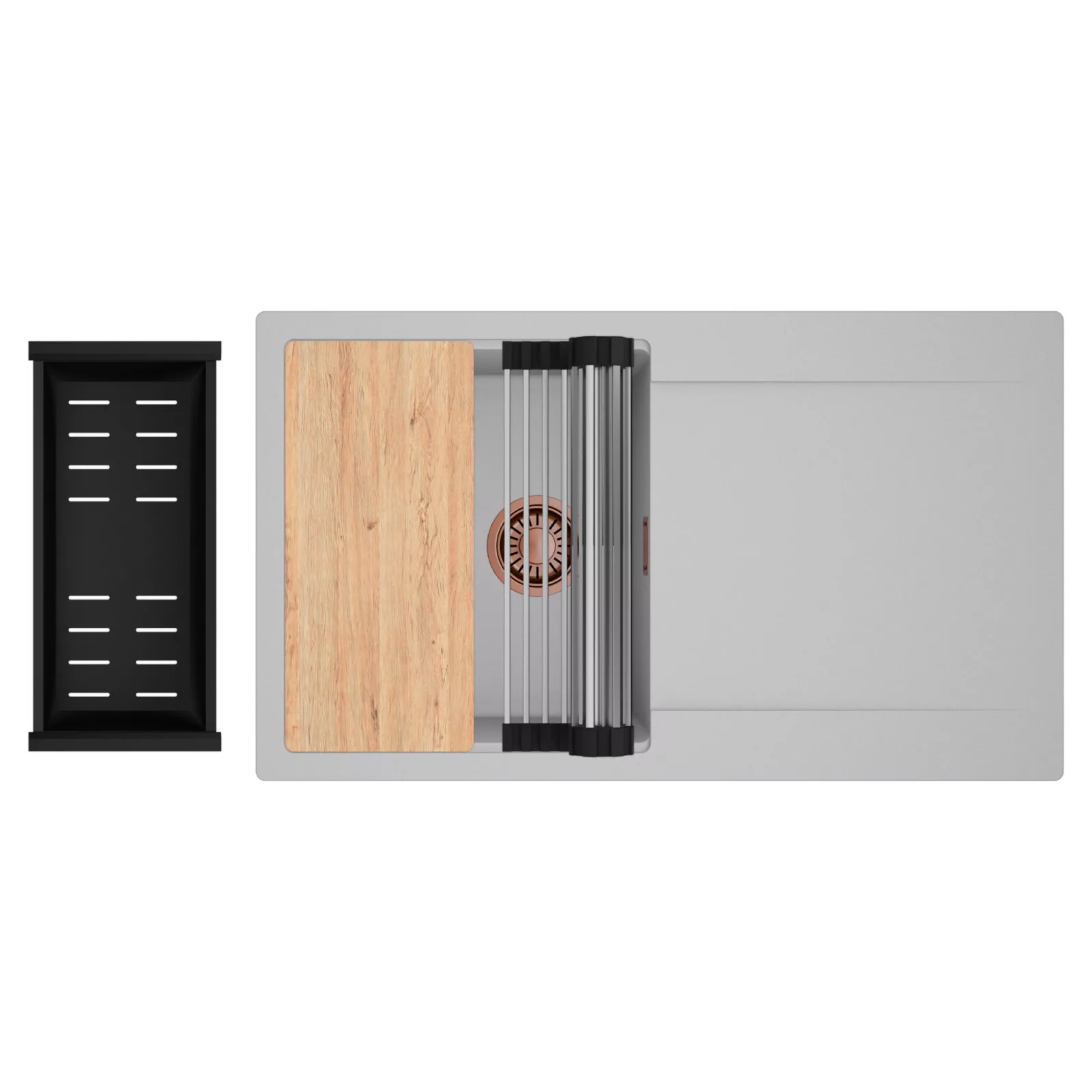 HD Onyx Grey 86 egymedencés mosogatótálca szett, vágódeszkával, csepegtetőráccsal és kosárral, alpesi szürke