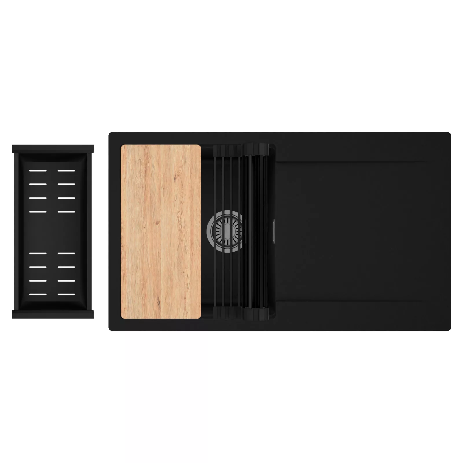 HD Onyx 86 egymedencés mosogatótálca szett, vágódeszkával, csepegtetőráccsal és kosárral, matt fekete