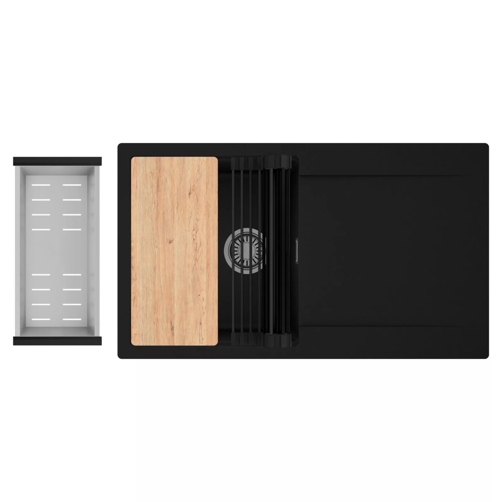 HD Onyx 86 egymedencés mosogatótálca szett, vágódeszkával, csepegtetőráccsal és kosárral, matt fekete