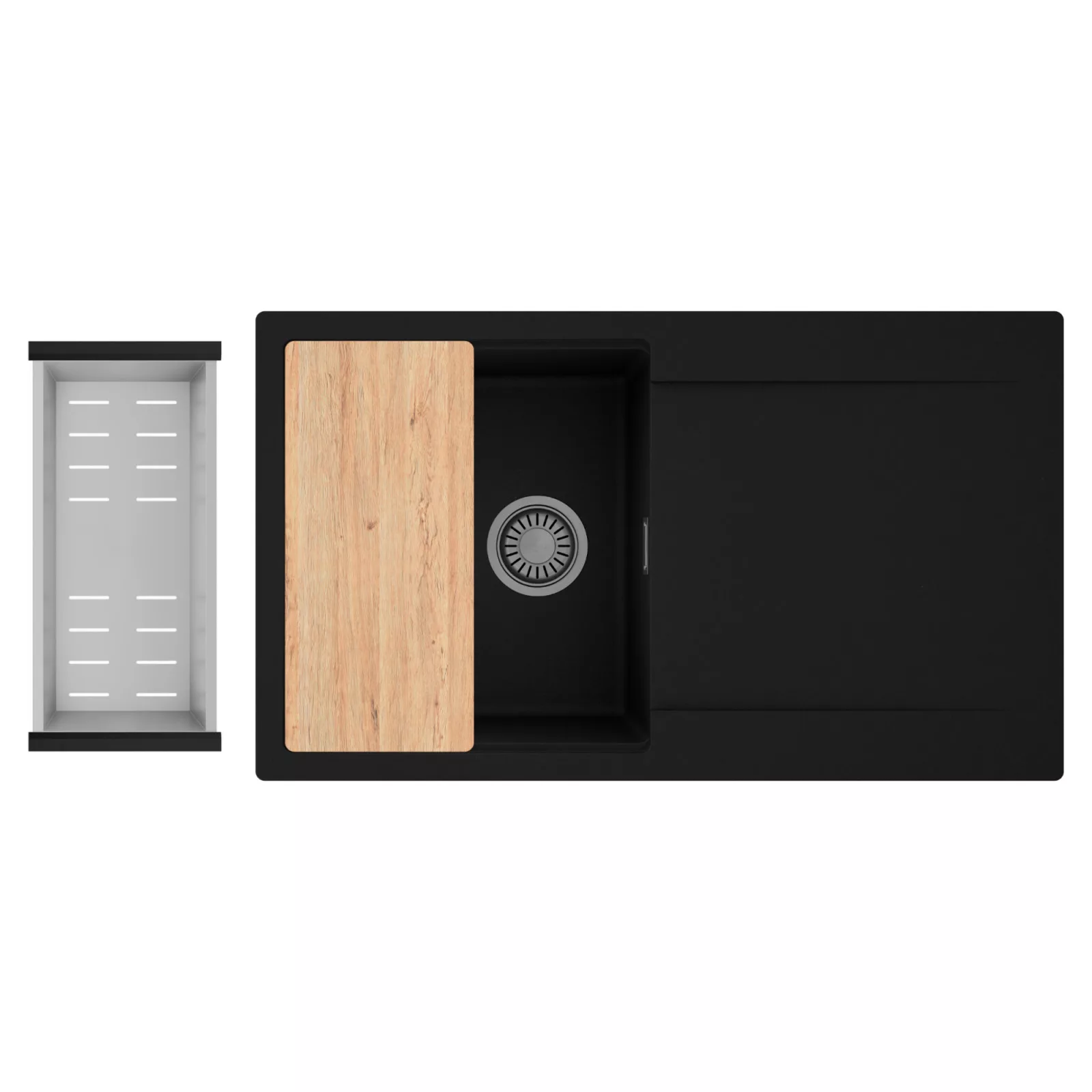 HD Onyx 86 egymedencés mosogatótálca szett, vágódeszkával és csepegtetőkosárral, matt fekete