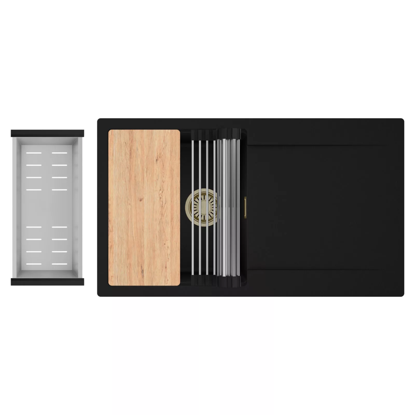 HD Onyx 86 egymedencés mosogatótálca szett, vágódeszkával, csepegtetőráccsal és kosárral, matt fekete