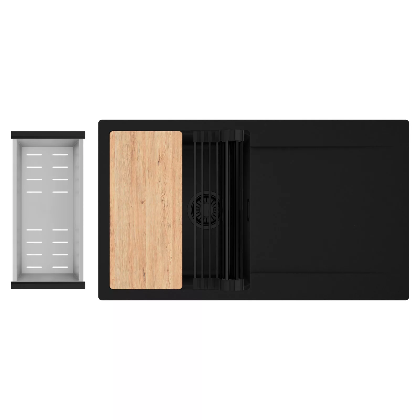 HD Onyx 86 egymedencés mosogatótálca szett, vágódeszkával, csepegtetőráccsal és kosárral, matt fekete