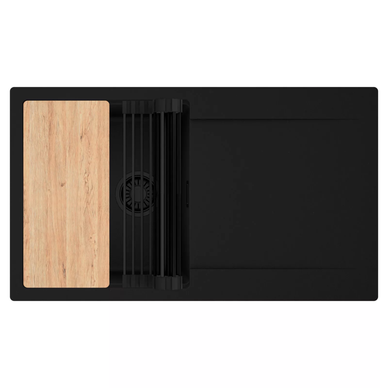 HD Onyx 86 egymedencés mosogatótálca szett, vágódeszkával és csepegtetőráccsal, matt fekete
