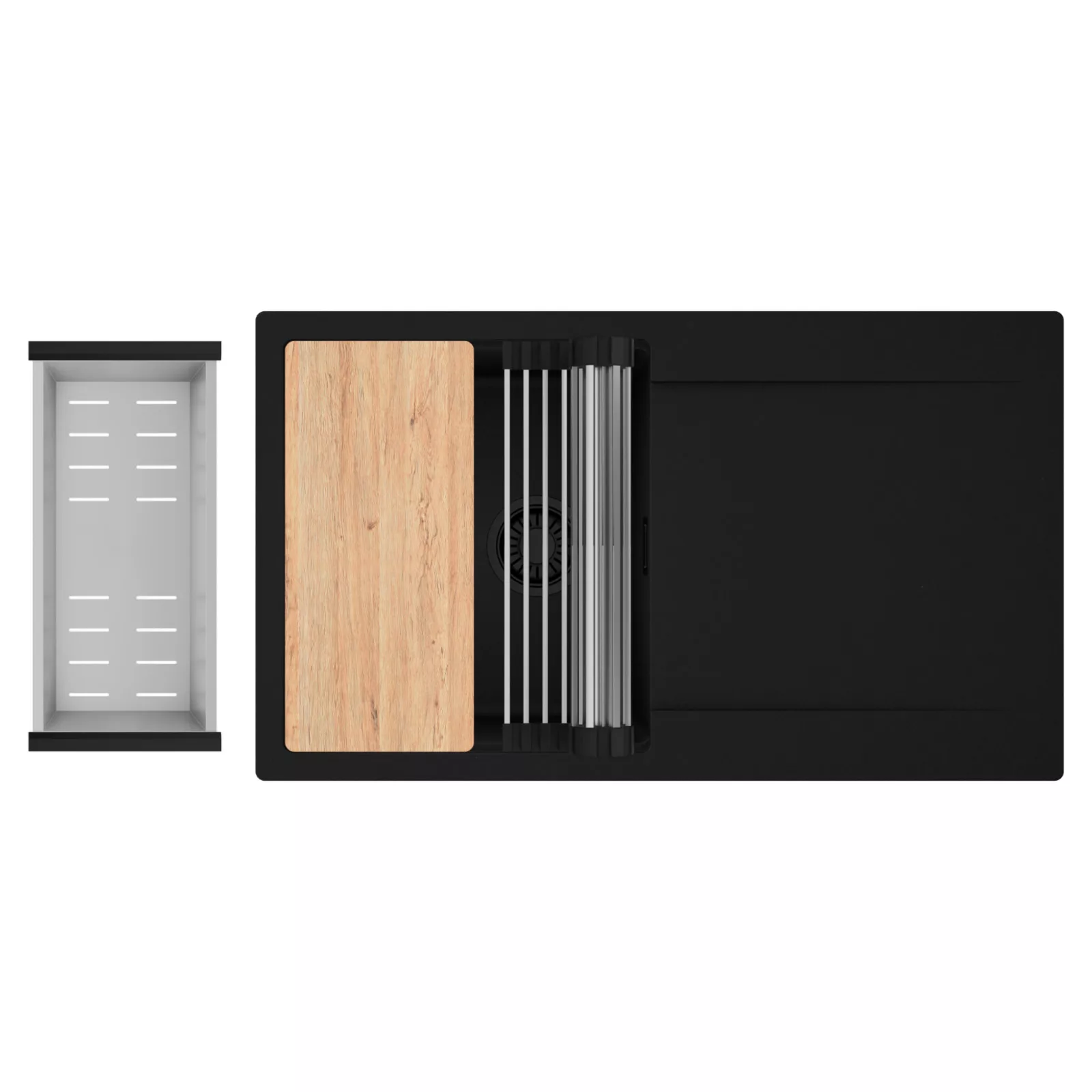 HD Onyx 86 egymedencés mosogatótálca szett, vágódeszkával, csepegtetőráccsal és kosárral, matt fekete